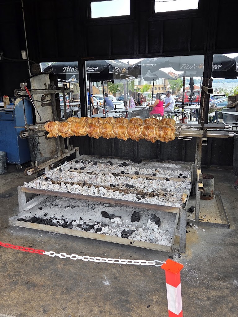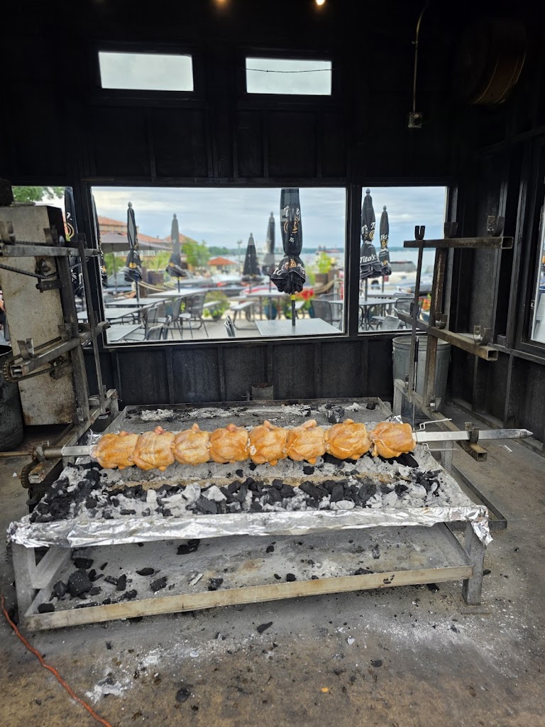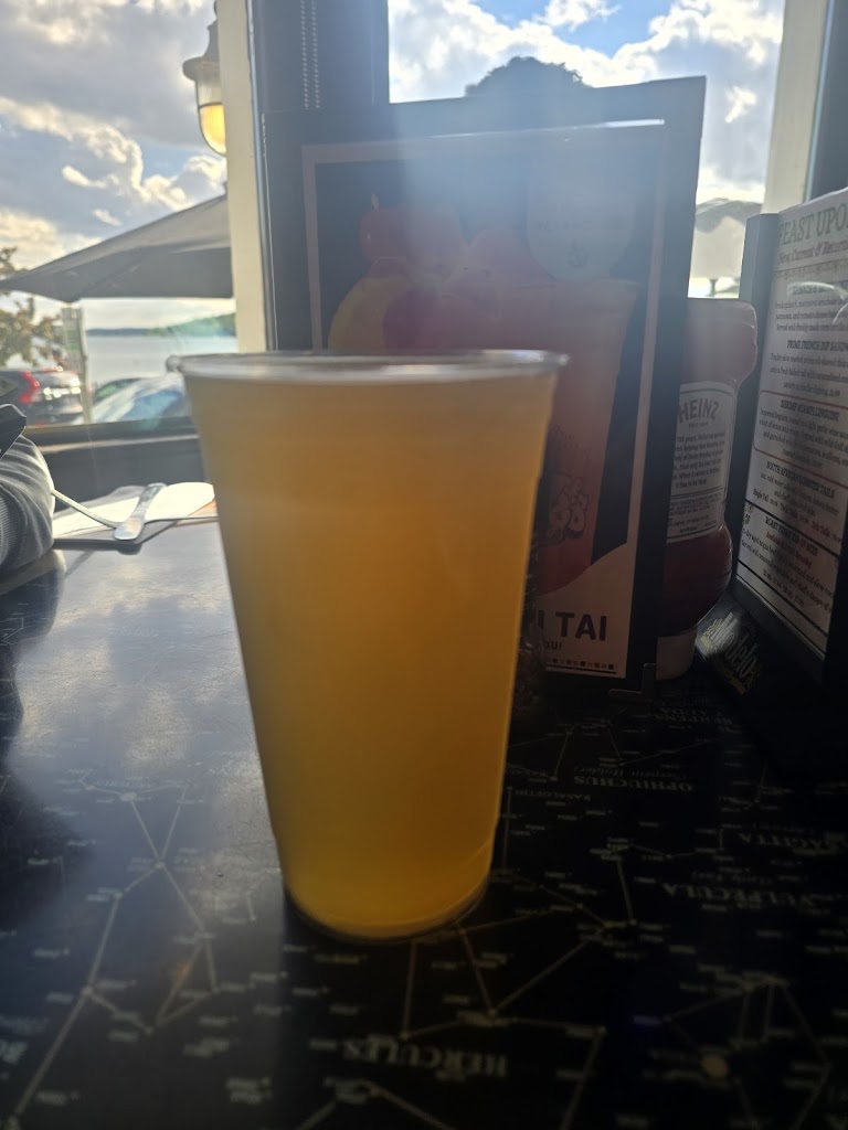 Great atmosphere and view. Great view of the lake. Food was awesome. Rotisserie chicken was nicely seasoned. They have spotted cow on tap. The place was decorated in the old pirate/naval scheme. Loved this place.