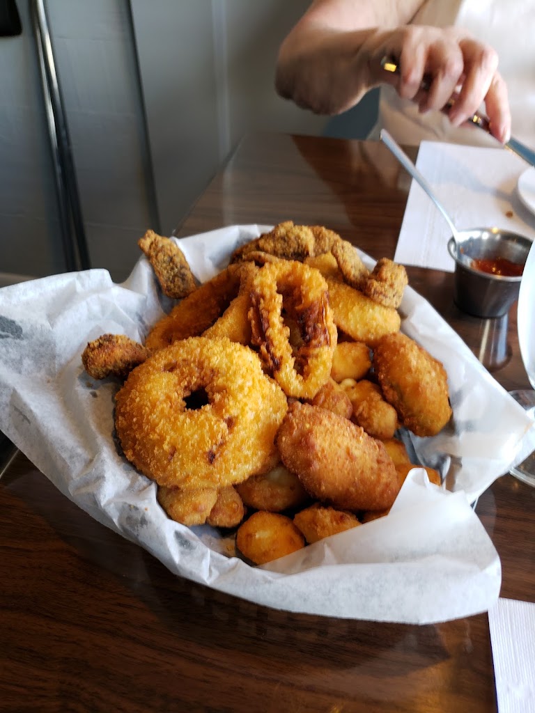 The restaurant has beautiful views of the bay! Try to get a window seat as they go fast! Shared the Lake Trout fish fry on Friday night & it was enough for the two of us. Only with they would serve bread tray with the meal & more than two pads of butter.