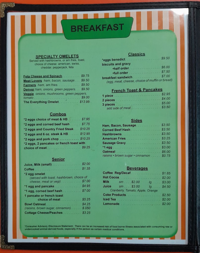 Nice, old school, mom and pop diner. Breakfast was great. Large portions. Very reasonably priced