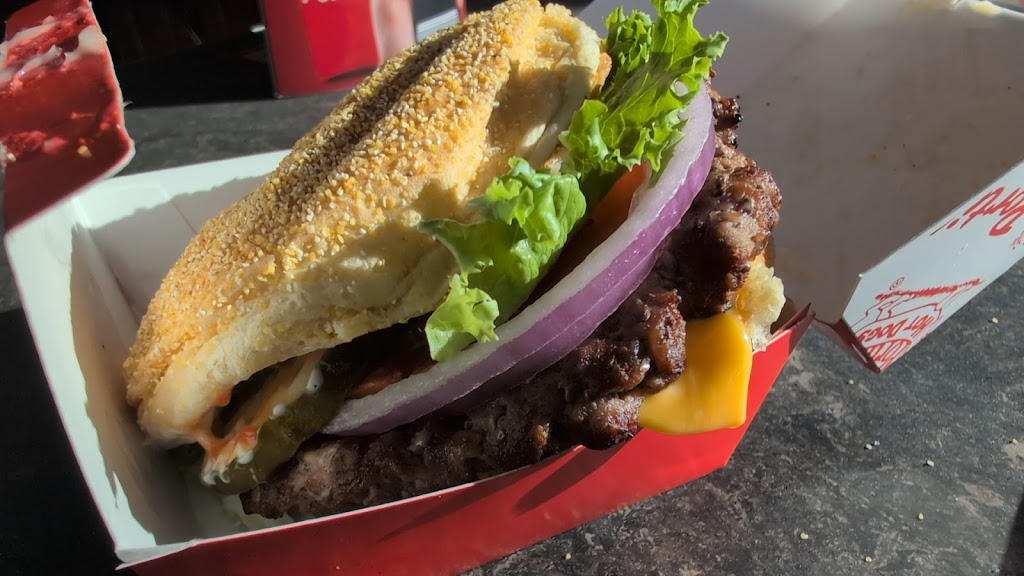 I might go again someday to try the shakes. Unusual shakes that looked amazing, definitely would get the fries again. Not sure I'd order the burgers without a poncho- not kidding. Actually don't think I'd order it again, I couldn't eat most of it with the grease running down my hands and arms, it was difficult to even try.