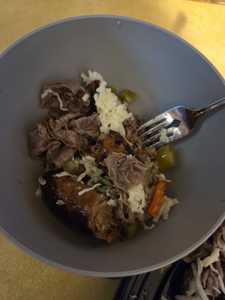 I did the Chicago combo bowl. A great option if you are on a keto diet. Although if you are on the Virta health plan, like me, watch your portion sizes. It is close to two meals! Amazing flavor and a couple of meats, great with spicy peppers and mozzarella cheese.