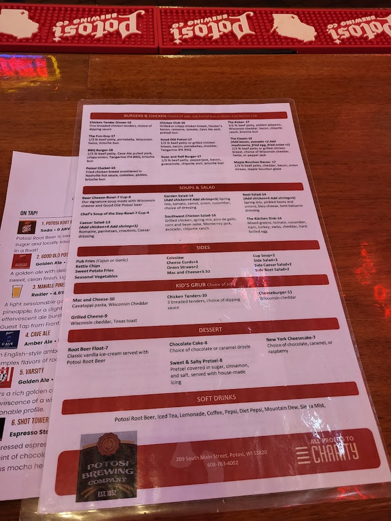 This is hands down our favorite brewery in our area. Its always a huge experience when we visit. We like to go through one of the largest beer museums every time we go. Three floors of cool beer stuff. The tours are also always great, you just need to plan for that and arrive at a certain time. Super friendly staff every time we go too. Very welcoming and good spirited. Last time we went I had their special mac and cheese dinner, it was amazing. It has bacon and grilled chicken in it. And every time we get the beer cheese soup which is legendary. And I can't say enough about the beers, we just love many of their beers. We pick them up all the time at our local grocery store too. Can't get enough of good ole Potosi and several of their other beers.