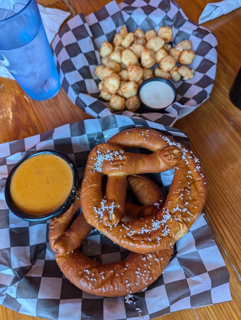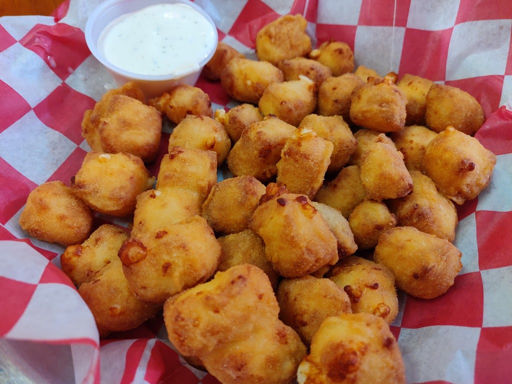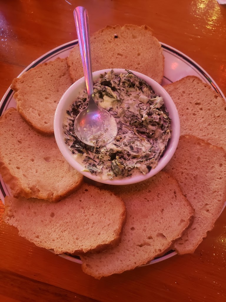 The beer bread and spinach dip appetizer was the winner of what we ordered - that I highly recommend. Cave Ale Chicken was good. Only the cheese curds wasn't up to par with other places - they were too oily!