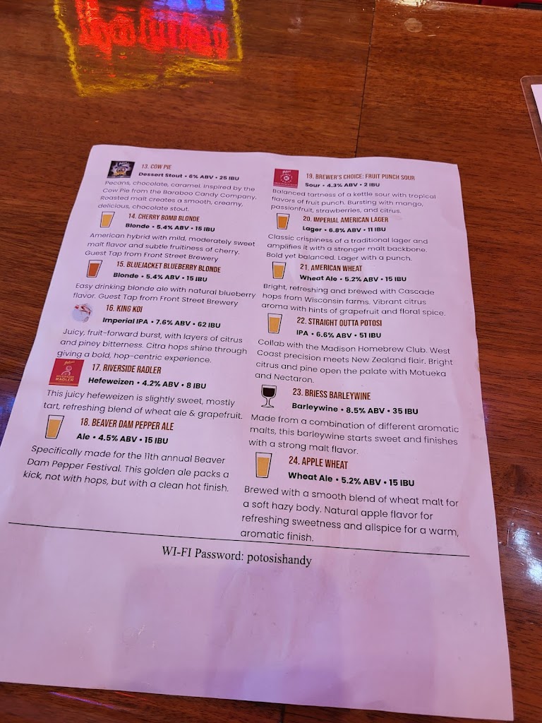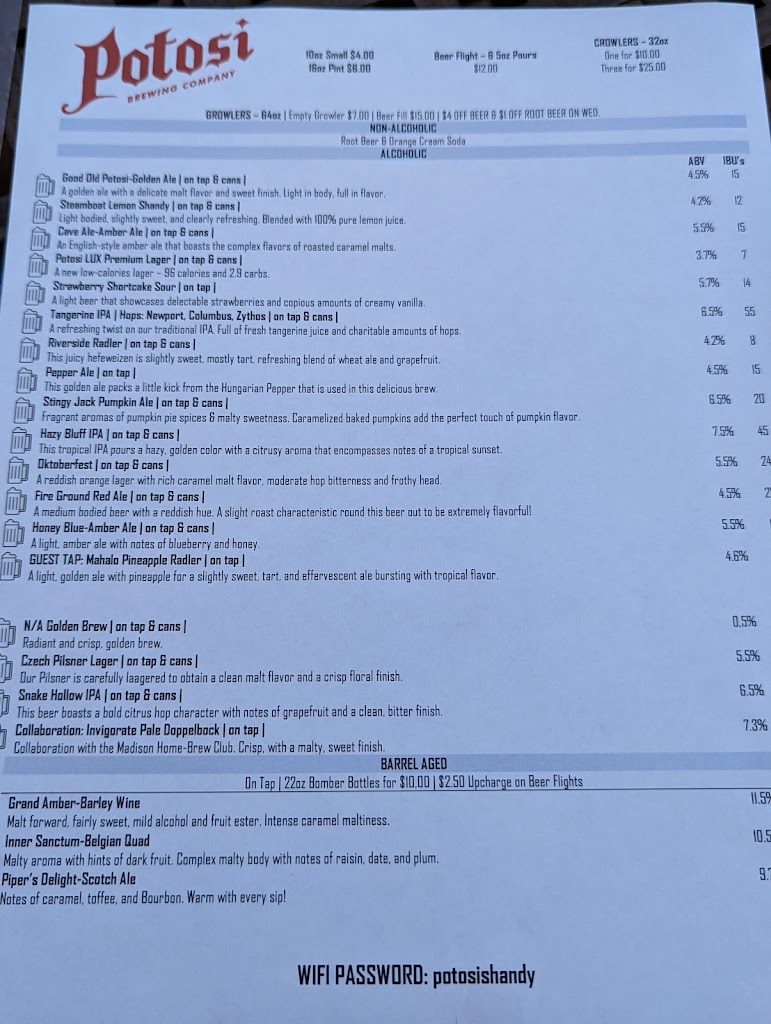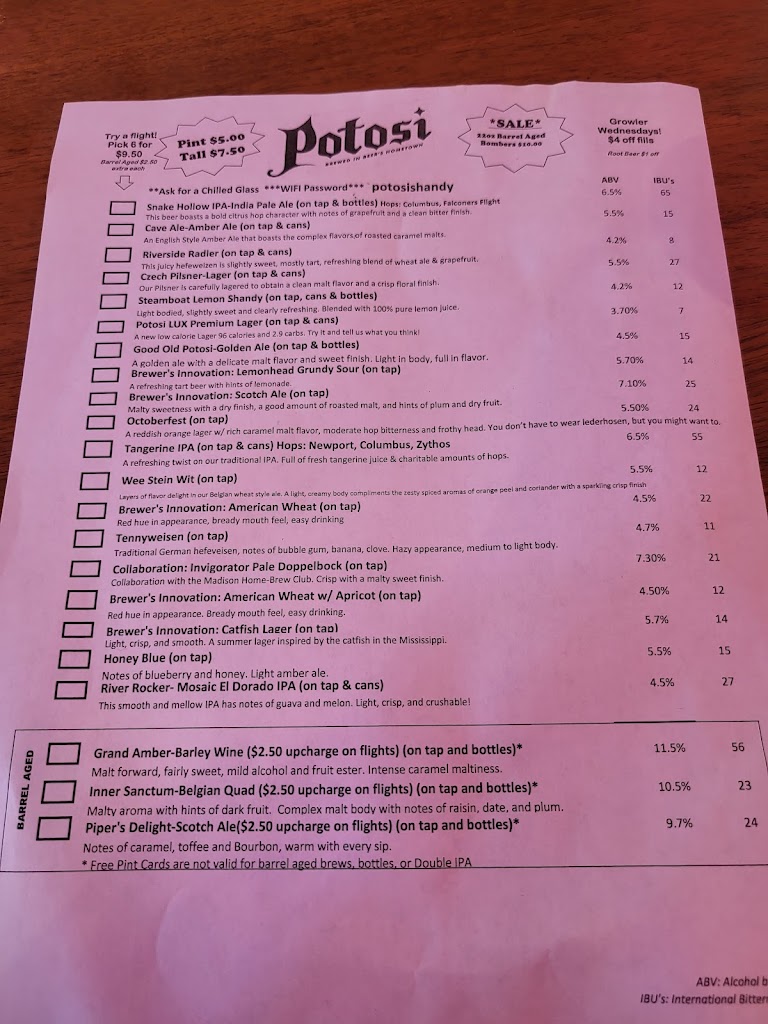 will probably never visit Potosi again unfortunately, but loved this brewery, good food and good drink and atmosphere.