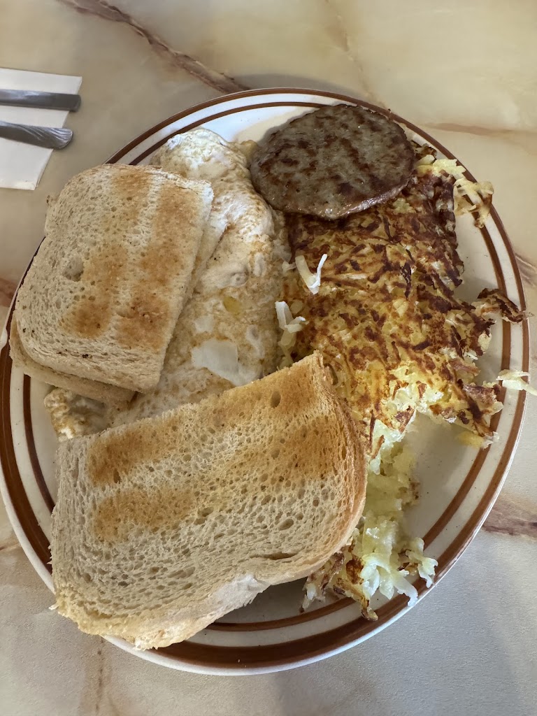 Stopped here on our way through town. It was one of the best breakfasts I’ve had in a while! The service was very friendly, the food was delicious, prices were reasonable, and the atmosphere was cozy. We had the Farmers Special - eggs, bacon, hash browns, and toast! All of it was something I’d get again. Their deserts and bakery items looked amazing too. If you’re in the area - make sure to stop in! It’s cash only - so plan accordingly.
