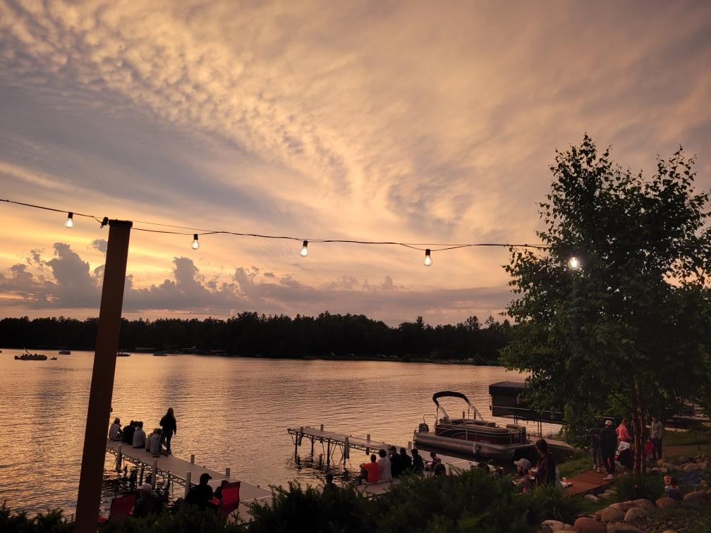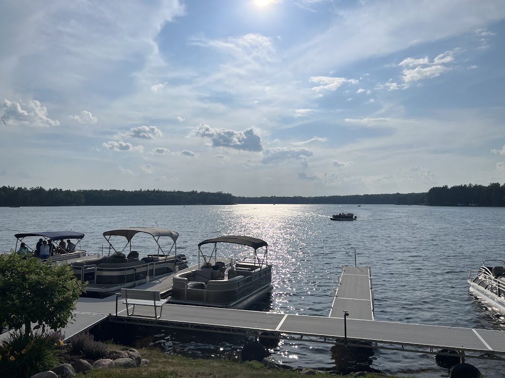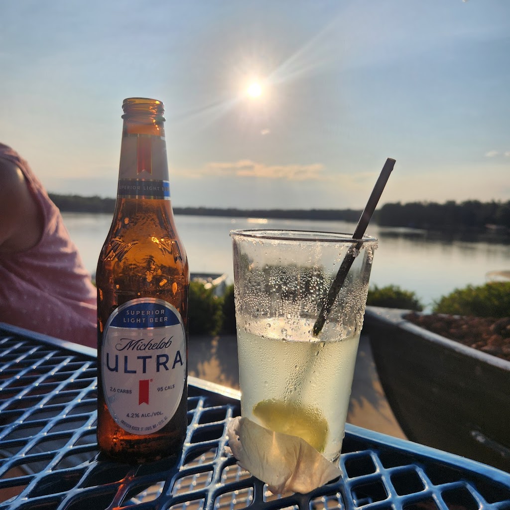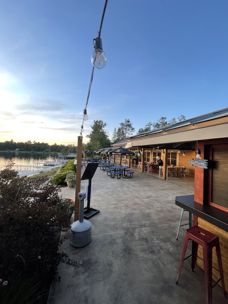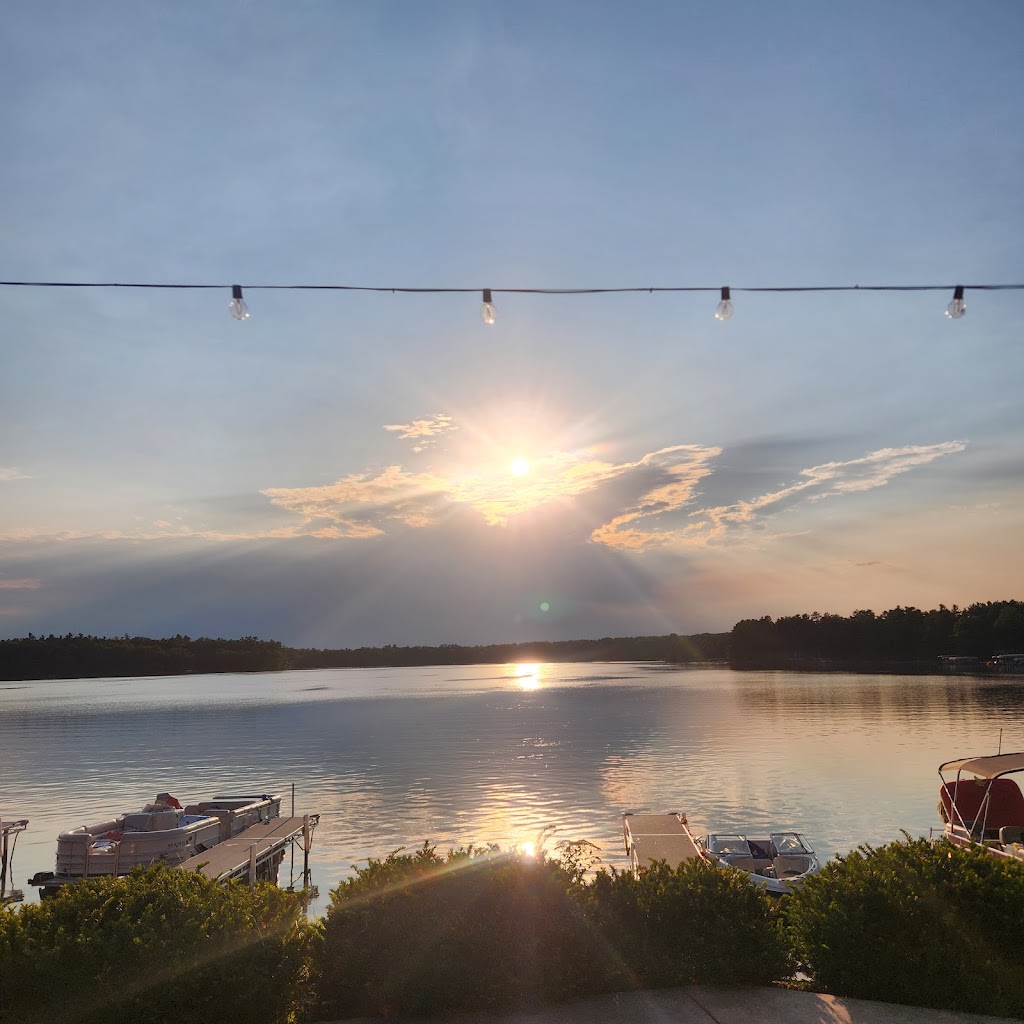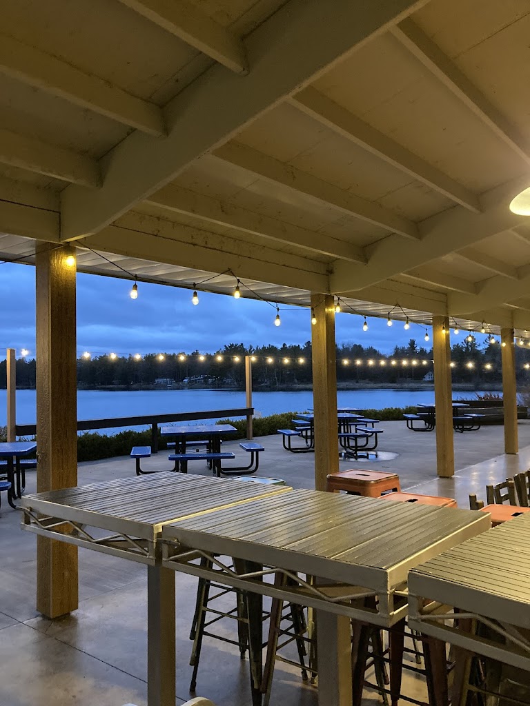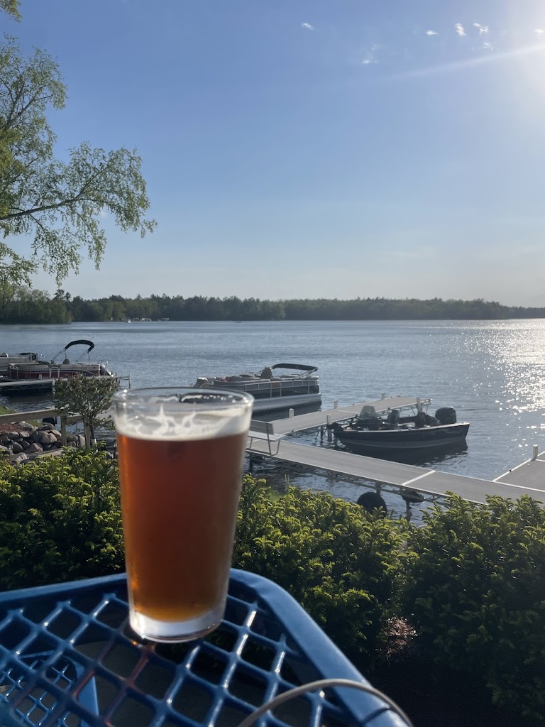 Beautiful view of round lake with well maintained docks to boat up to. Food selection is very appropriate for the location and the beer selection is really good with several local beers on tap.