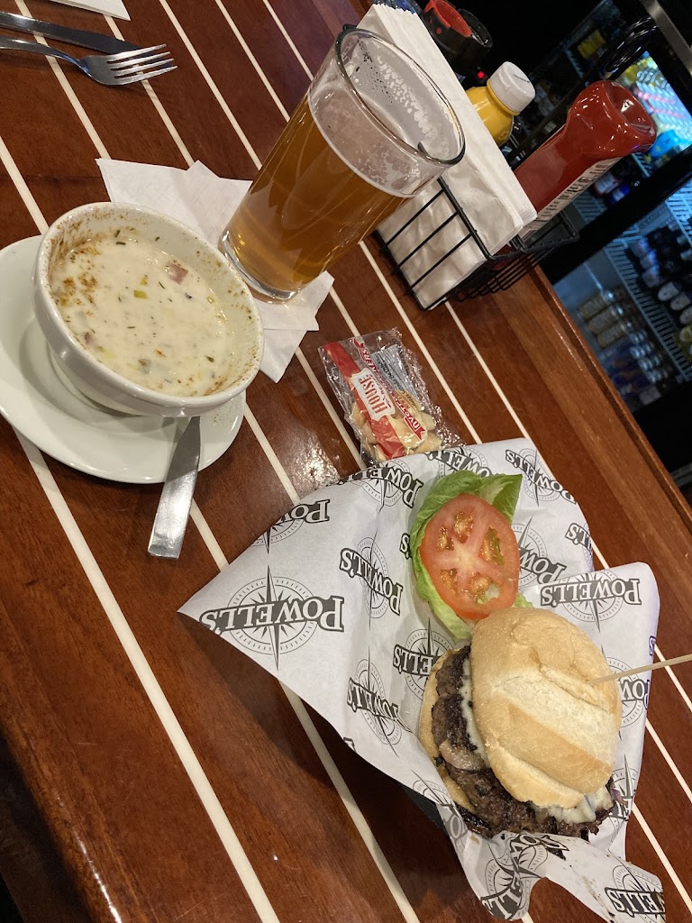I was immediately greeted by Grace, the bartender/server. She was delightful! Helpful. Attentive. I love a good fish fry, but really wanted a burger. It was thick, juicy, medium rare. It was exactly what I wanted. The clam chowder was good, not great. The music didn’t fit my idea of up north lakeside restaurant, but I’m not a regular, I’m visiting, so let the regulars be happy. I had a fantastic experience, especially as I was coming in closer to closing time. Grace is an amazing asset to Powell’s and the fact they seem to feel the same way about her, speaks volumes of the owners. Highly recommend. I would definitely go back. …need to try the fish fry.