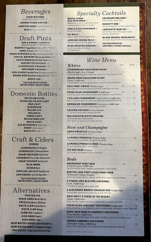 Food was okay, we stopped for the Fish Fry, and a single Filet was offered with a small handful of fries. Northern WI typically provides a much better value for Friday Fish Fry. The price tag in this case is greater than the food and experience provided. Spicy Black Bean Burger was really good. A family of three ran north of $80, Fish Tales down the road serves the same quality if meal for half of that.