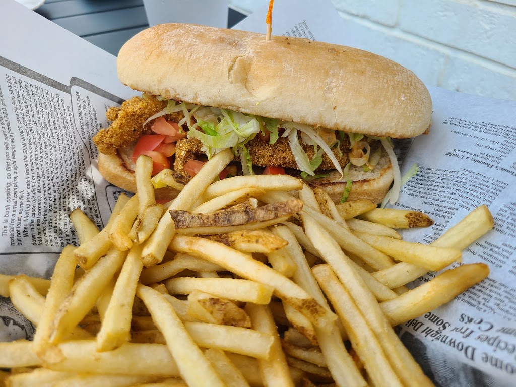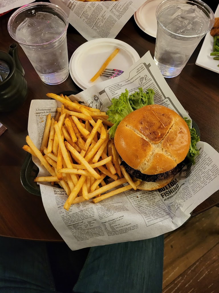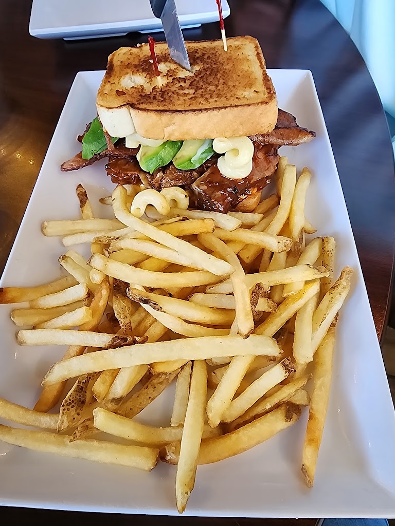 Sushi night was AMAZING. Recommend the Roadhouse Roll and Yum Yum roll. Tried the catfish poboy sandwich - super refreshing and the batter was delicious, non-greasy and tasteful 🥰🤩 We also tried a BBQ burger with onion rings, pork belly and Angus beef patty - super delicious and flavorful. The onion rings were FANTASTIC - crisp, not greasy, and almost sweet. Outdoor seating overlooking the river or on main street, as well as indoor seating. 😀 Happy staff, amazing cooks and owners - they actually care about their food and the energy of the space. 10/10 recommended 👌