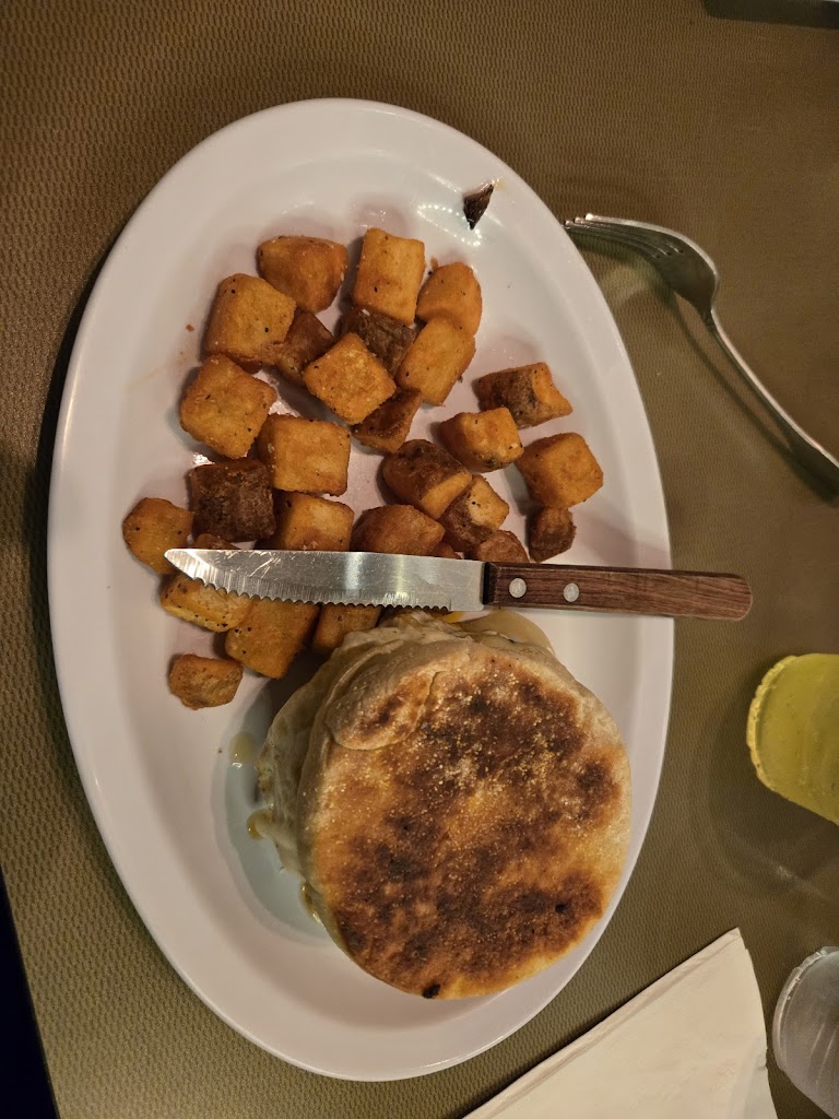 Super friendly and helpful wait person and good and reasonable food. The AC was turned up a little high.