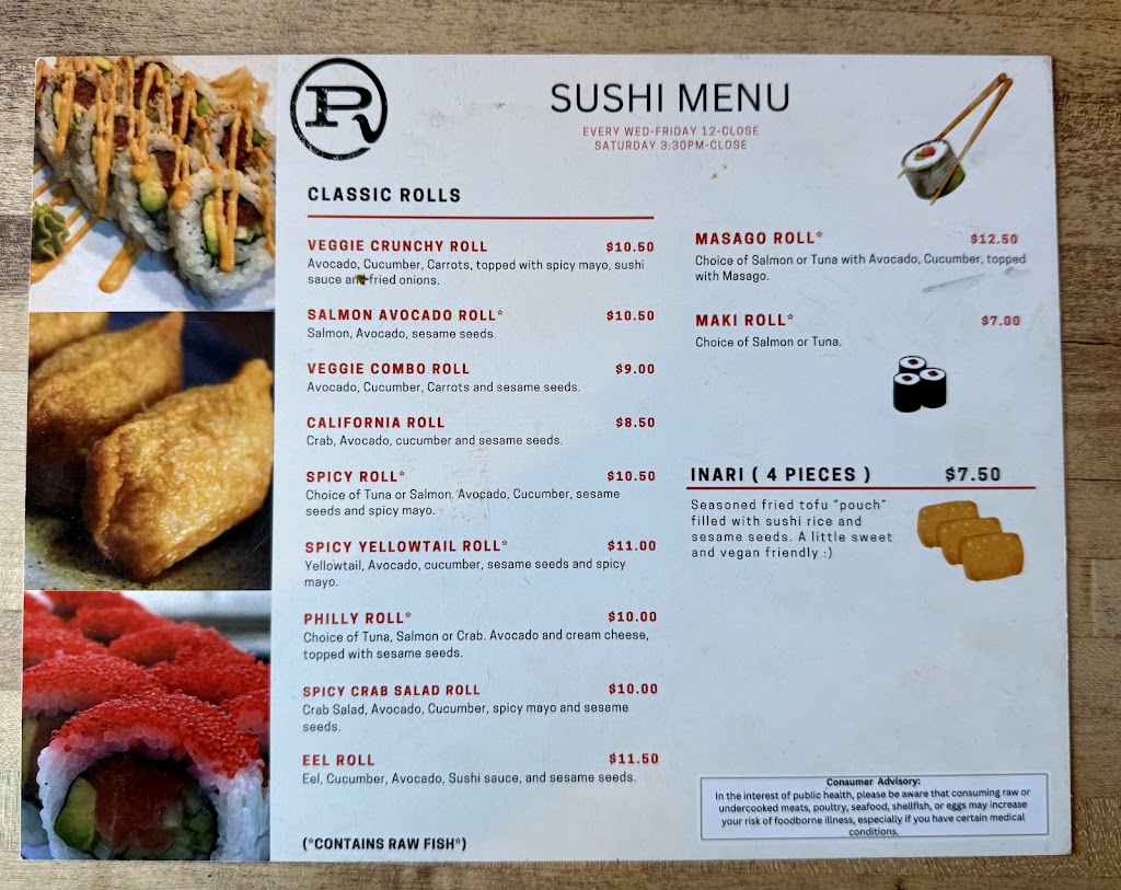 Solid choice for PCity. Varied menu with rotating specials. Breakfast there has been very good. The fish and sushi has been consistently good.