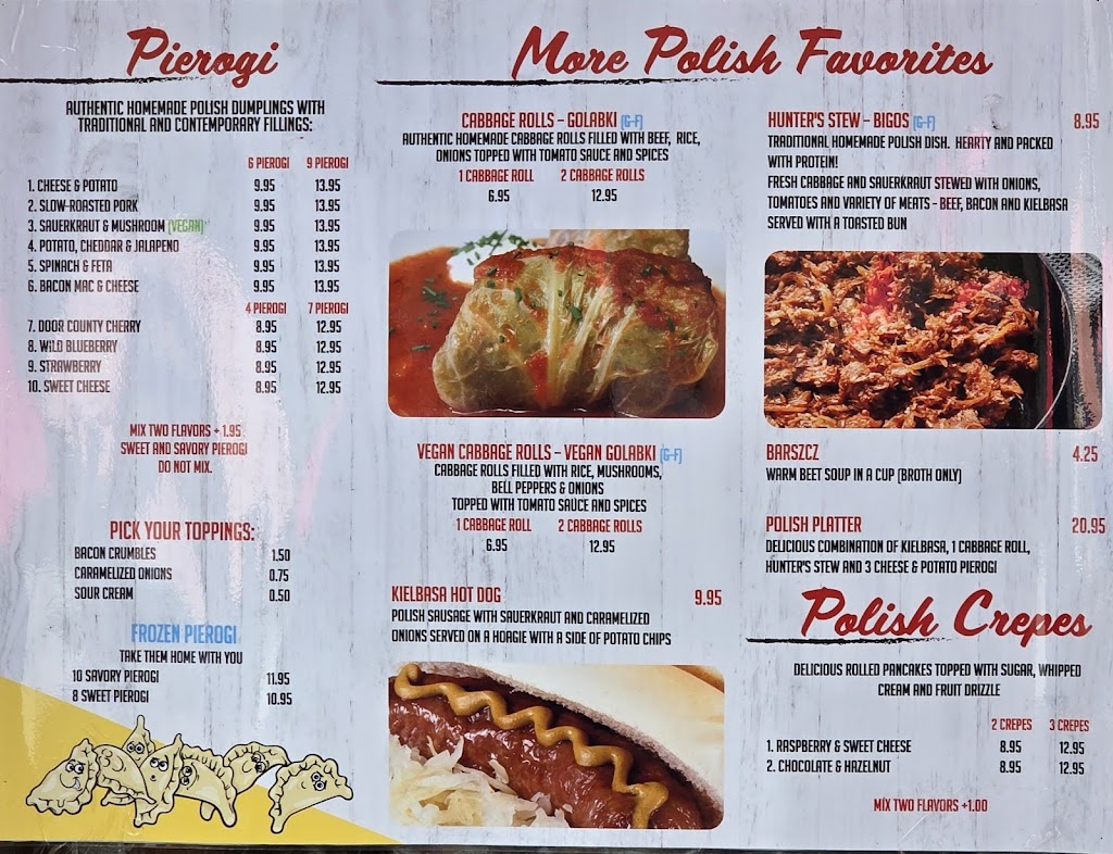 I’m Polish and make pierogies so I wanted to see how this place did. They are authentic and so yummy. The owners are the sweetest people and super friendly. Of course, I had to take some frozen pierogies to go. We don’t live in Wisconsin, but the owner told me they deliver in Wisconsin. Our pup enjoyed a little bite as well! Visit them!