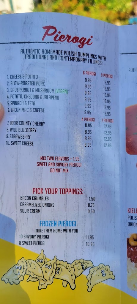 By far the best customer service we experienced in Door County! The owner was so friendly, even remembered my name since I called ahead. The pierogis were delicious, and so were the Polish beers. We tried the bacon mac n cheese, pork, and cheese and potato. This was a great stop!