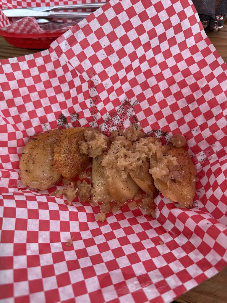 So good! Walked over for a mid-afternoon snack for 6 people and we ordered 6 orders of pierogis and some cabbage rolls to go. Cabbage rolls were insanely good and I couldn’t stop dipping my pierogis in the marinara. Looks like you can only get them in Door County, so definitely worth the stop!