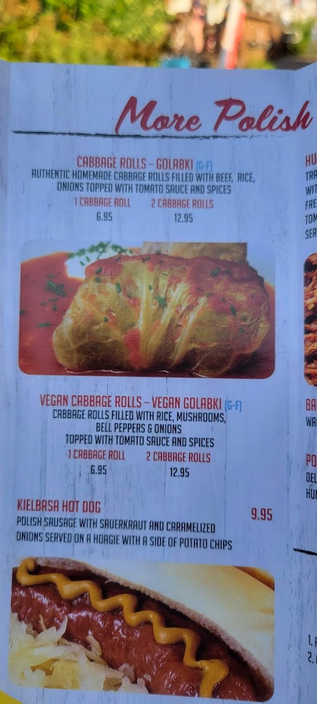 Outstanding Polish food. Simple set up with food brought right out to the picnic table after you order.