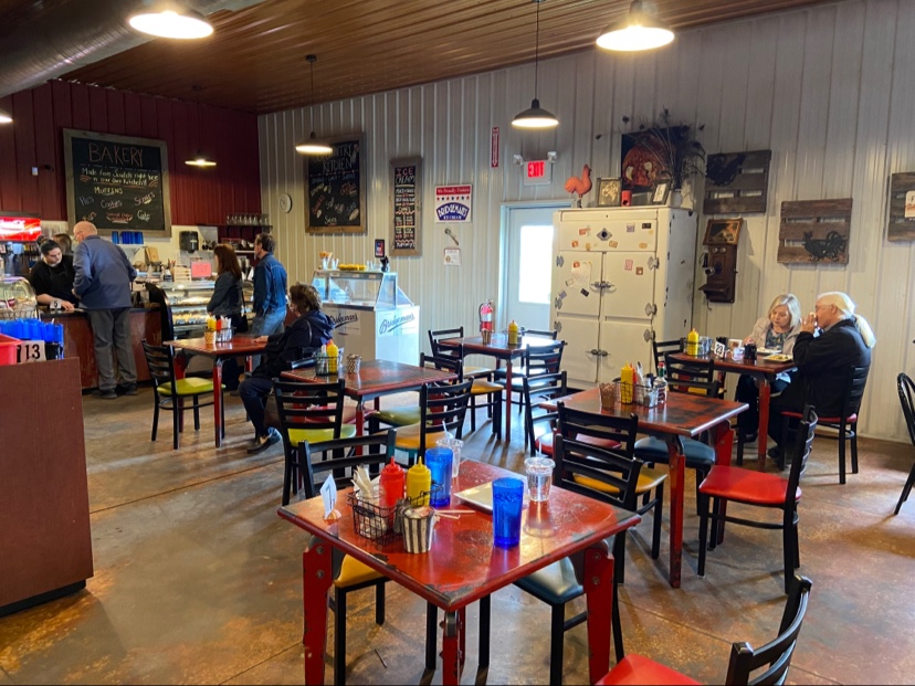 I've stopped here a few times, and each time, I love it even more. The atmosphere is country style and rustic. The food I'd EXCELLENT! I can not recommend the Grinch and the Dry aged beef enough. Both delicious sandwiches. The pastries are out of this world, too. Reasonably priced and all homemade. It's a bit chilly if your table or booth is near the door, so keep that in mind if it's a chilly day and you wanna warm up. It's a must stop each time I go to MN or heading west.