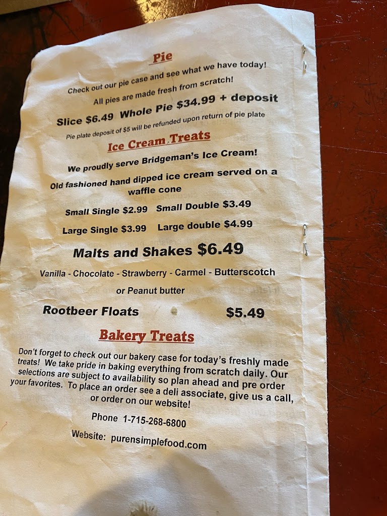 Pure-n-Simple is a family owned business that has something for everyone! Come in to buy bulk food items for your big or small baking projects. Treat yourself to a bite to eat in our restaurant where you will be offered home made, delicious menu selections. Make sure to save room for desert because we have the best pie around made from scratch! Or just come to browse our gift shop and check out our many local products including meats, cheeses, real maple syrup, honey and more. If you are on your way to the cabin swing in to grab those forgotten convenience items, we have you covered!