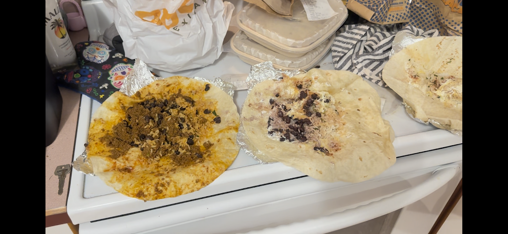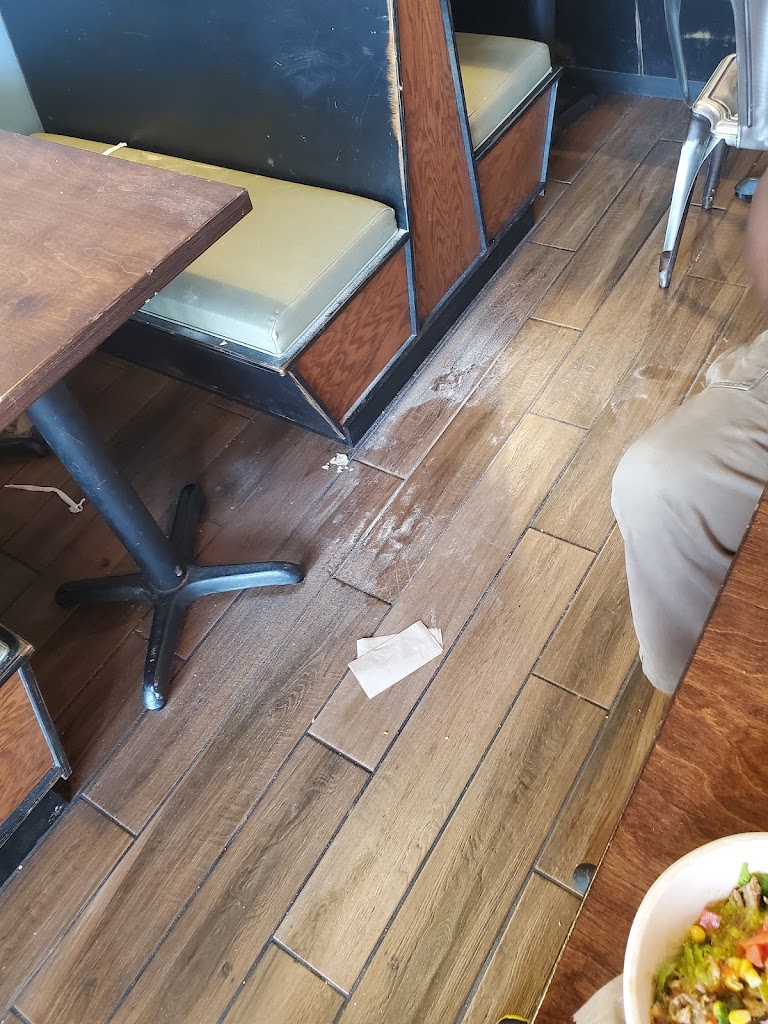Every table was dirty, floor hadn't been cleaned, utensils empty and the manager didn't seem to care. Chips were stale and they were out of rice, cilantro, and other items during peak dinner time. What seemed to be 2 managers stood right in the way of the register, chatting loudly in front of customers. The furniture/seating benches were so worn down, the paint was gone. I just did not feel comfortable or clean eating inside the restaurant. At least the food was good!