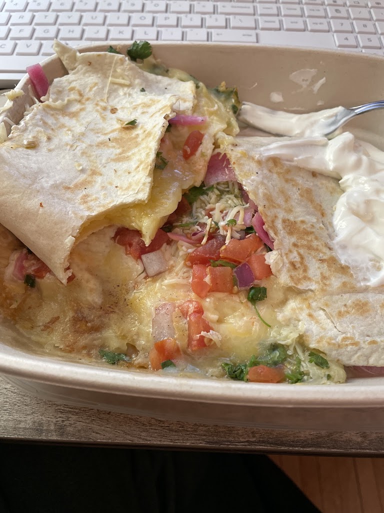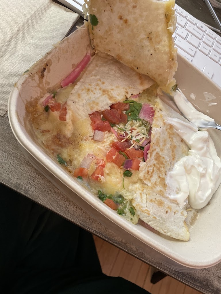I understand that places are short staffed and everyone is very stressed right now but the quality of this quesadilla is just trash! I have to eat it with a fork. It’s more ripped apart then cut into pieces, the cheese is not melted all the way leading to the inside spilling out into the container, and the employee was SUPER rude !! Very angry/irritated making for an awkward interaction. But it tastes great…
