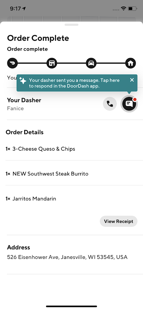 I had ordered a Mandarin Jarritos drink and I ended up with Lime. I don’t know how they could screw this up. All the rest of the order was correct. I’m a little upset.