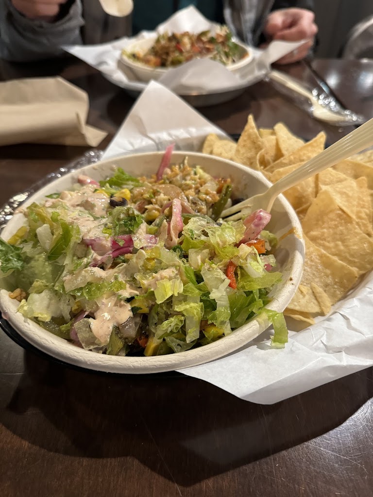 The food was delicious. My husband and I each got a bowl, and our daughter ordered a little salad. I didn't even know they did kids salads! But they do. The servers were nice. It was super busy and packed, so they didn't have time to keep the restaurant clean. We had to wipe a table down ourselves. But we were there for lunch on black Friday, so you get what you get and you don't throw a fit.