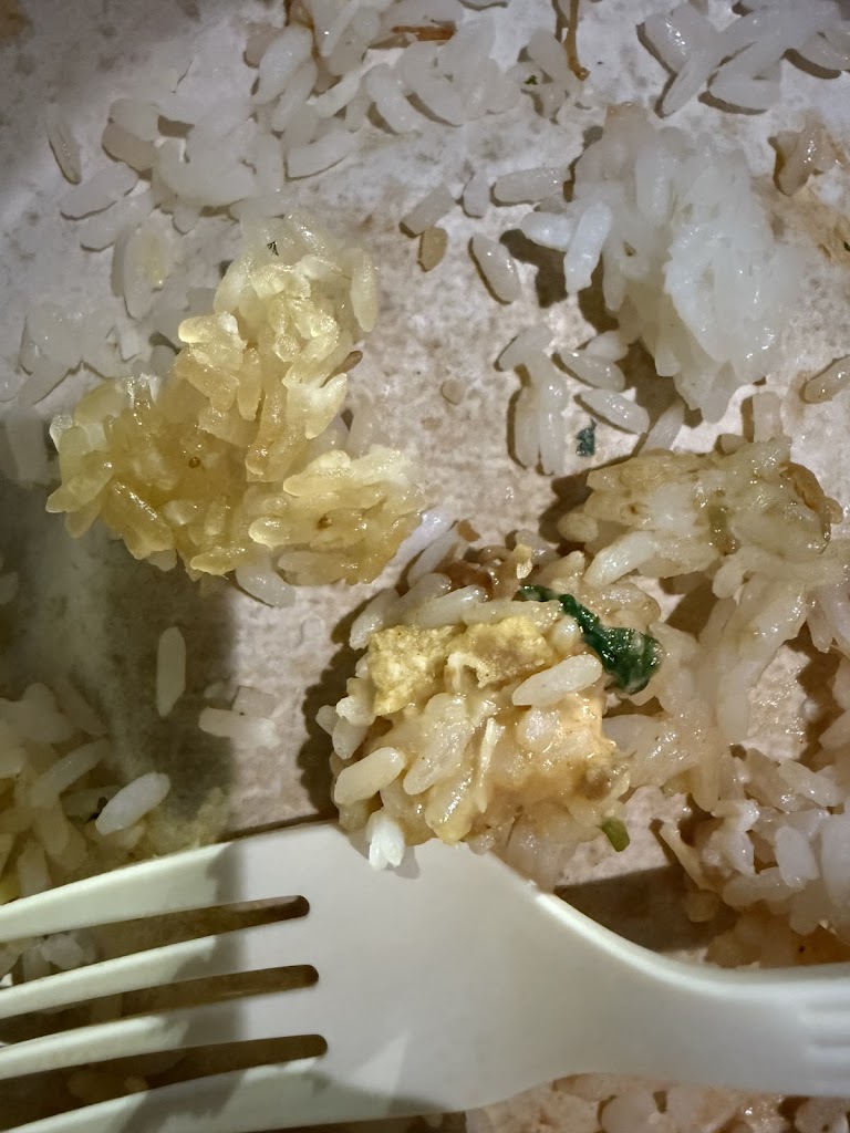 The rice was very hard and crunchy with clumps in it which I took pictures of by the way to show you all what I was served. I was spitting out the hard rice that was mixed with soft rice left and right, I was so hungry after work I ate the crap with displeasure it was either eat or starve until pay day it’s like they took old rice from left over trash and served it to stretch the inventory or something, my bowl was very light, this is a protein bowl and it was portioned poorly. Very disappointed!!!