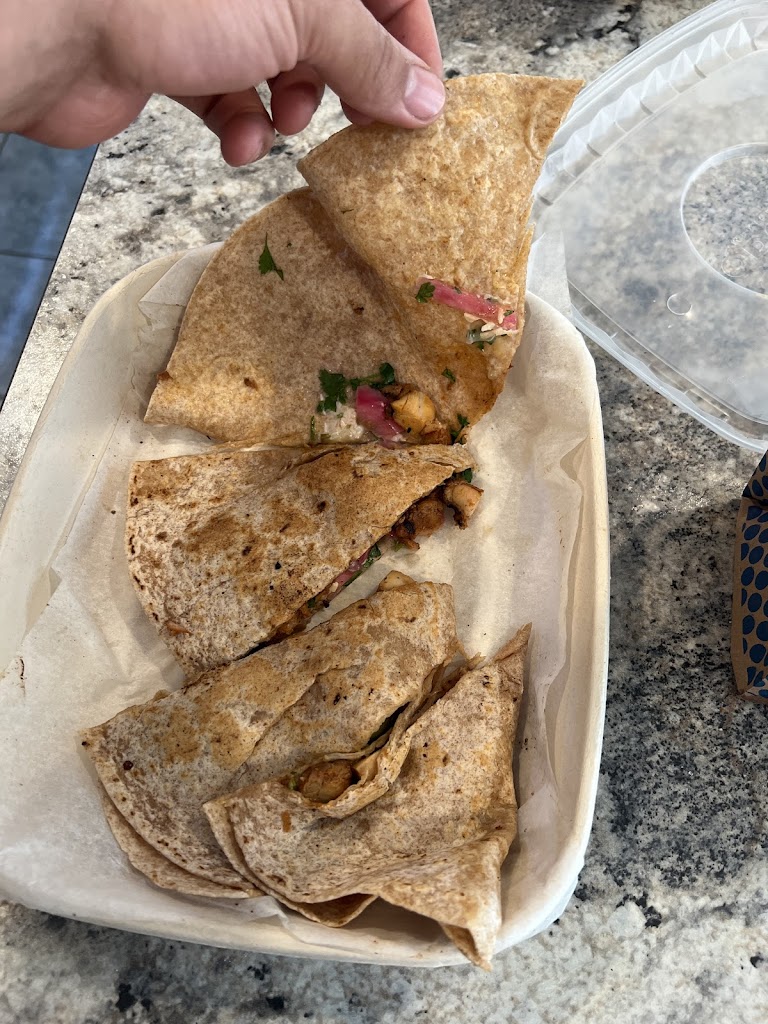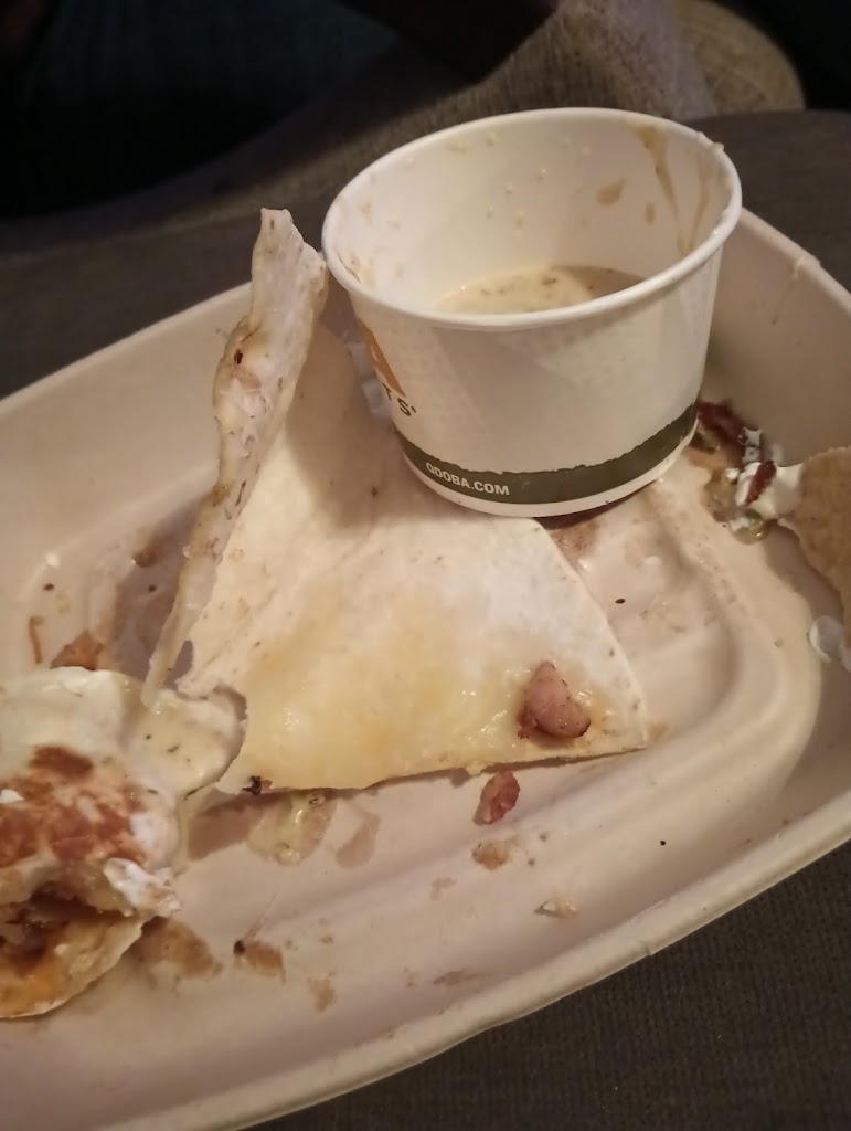 Everything was just tossed in a container. The kids quesadilla I had to reassemble to even eat not to mention they threw the chips on top so by the time they got to me they were soggy and disgusting I had to throw them away. I ordered queso and the cup is only half full. My last order was just as bad. Thought I would give them a second chance but for the money I’m going elsewhere!