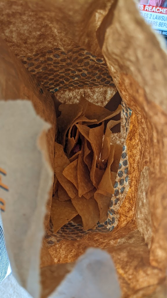 First I thought it was a fluke, now it’s a consistency. Chips are either over baked or not fresh and doesn’t seem like it’s revolved out enough so you get a mix of chip type. Missing complete entrees is the biggest problem. A full burrito bowl and chips with queso, regularly missing something. I don’t live close enough to “just go back” and nothing better than getting home and a family members meal isn’t there. Used to be good here but it’s just not good if you order ahead.