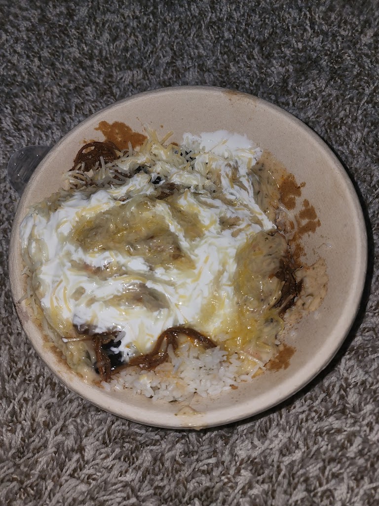 The chicken was also kind of off. Some pieces were super burnt, like they were stuck to the grill from a previous batch and just left there. I just picked them out because they're not edible.