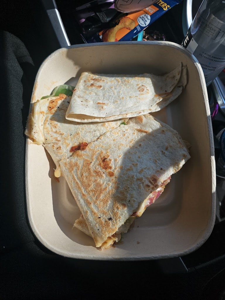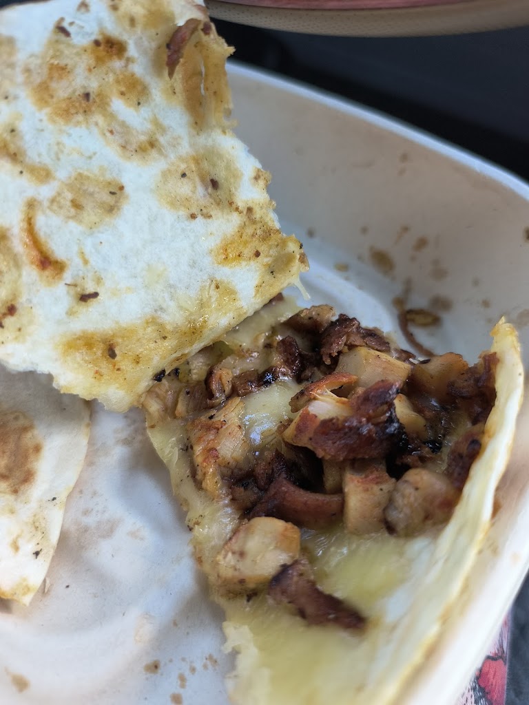 I was really let down by this quesadilla. For how much it cost, there just wasn’t enough cheese or chicken inside, it felt more like a snack than a meal. The cheese they used didn’t taste right for a quesadilla either. It reminded me of the kind of shredded cheese you’d get on a Taco Bell taco, not something that melts nicely into a warm tortilla.