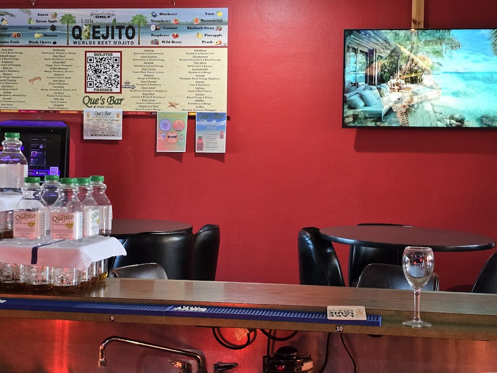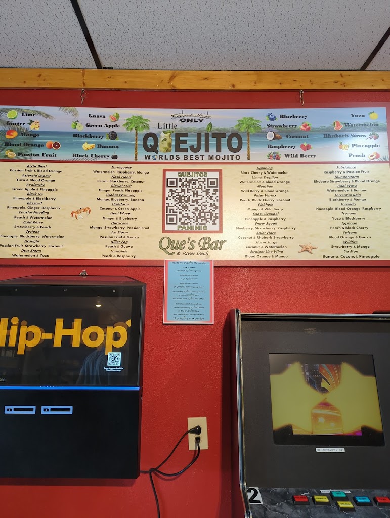 I had the best Mojito especially since I don’t like them. I definitely do like Scott’s!! Delightful atmosphere, terrific water view from the cozy deck, fantastic plants & the Passion Flowers were breath taking. If you really want a terrific relaxing & enjoyable experience drive here as soon as you can. Thanks to my wonderful Friends, Nancy & Jerry, for introducing me to Que’s!! Next time we will dine. Thank you Scott for a wonderful experience.