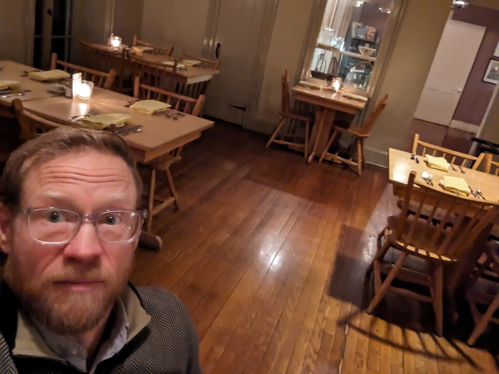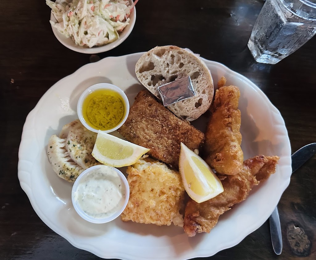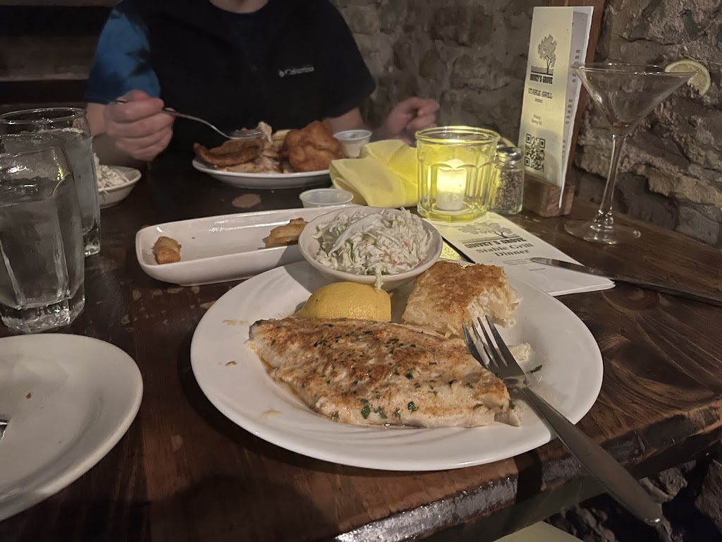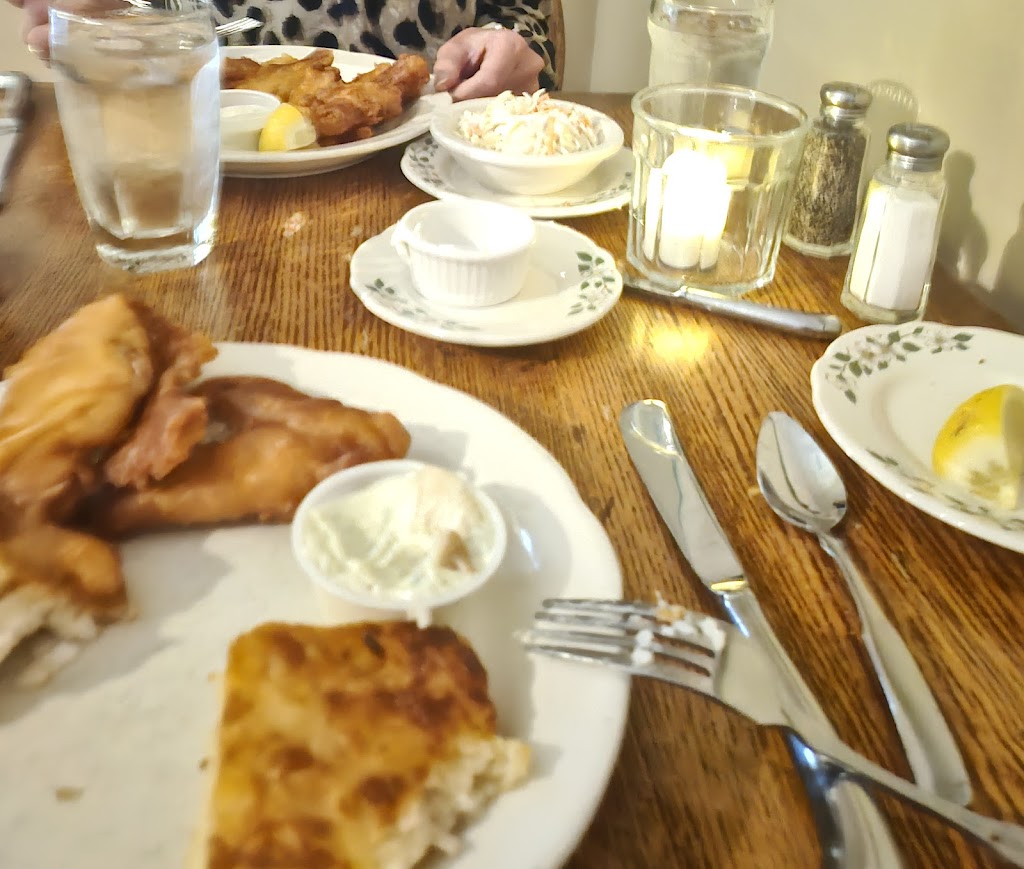 Wonderful historic site. Blueberry muffins (fresh and warm!) instead of bread was a pleasant surprise. Had to do the Friday fish fry - excellent. Enjoyed a rare glass of wine. No room for dessert.