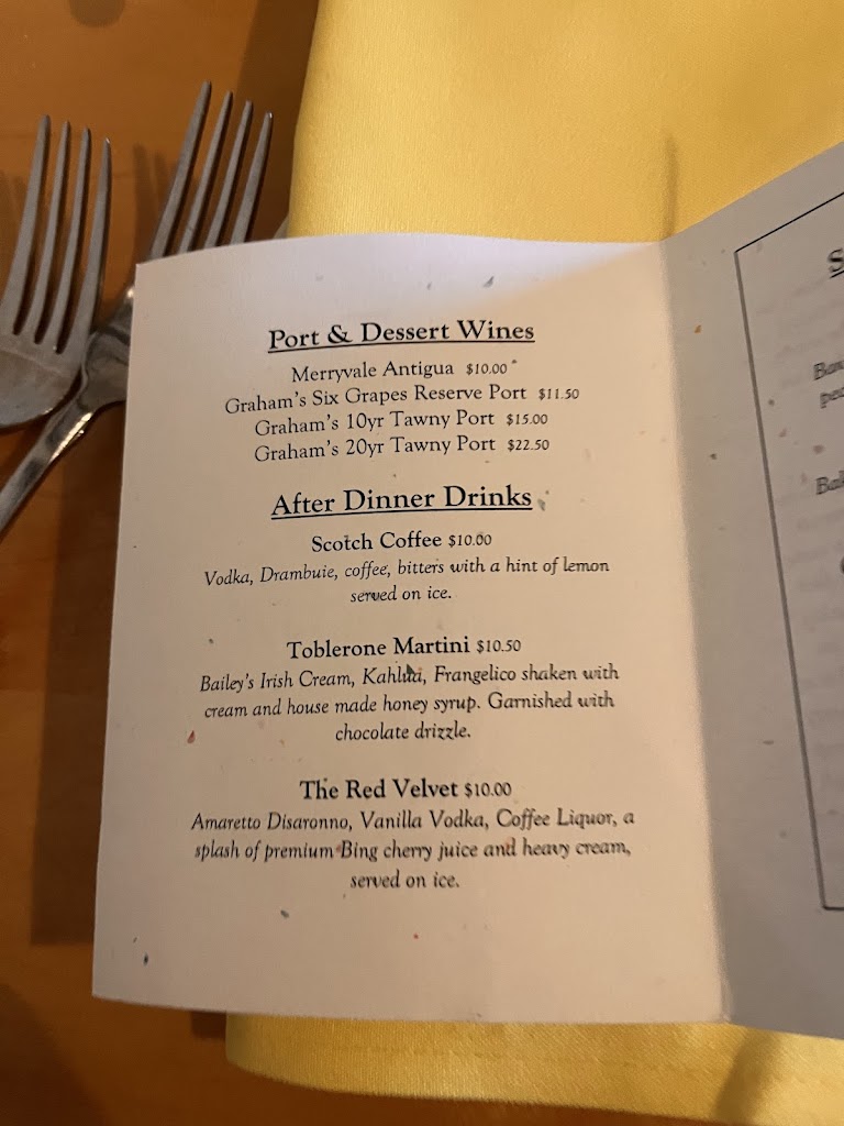 To top off the meal, we indulged in the Turtle Pie and Apple Crisp desserts, both of which were heavenly creations that left us longing for more. The perfect balance of sweetness and texture was a fitting conclusion to an extraordinary culinary journey.
