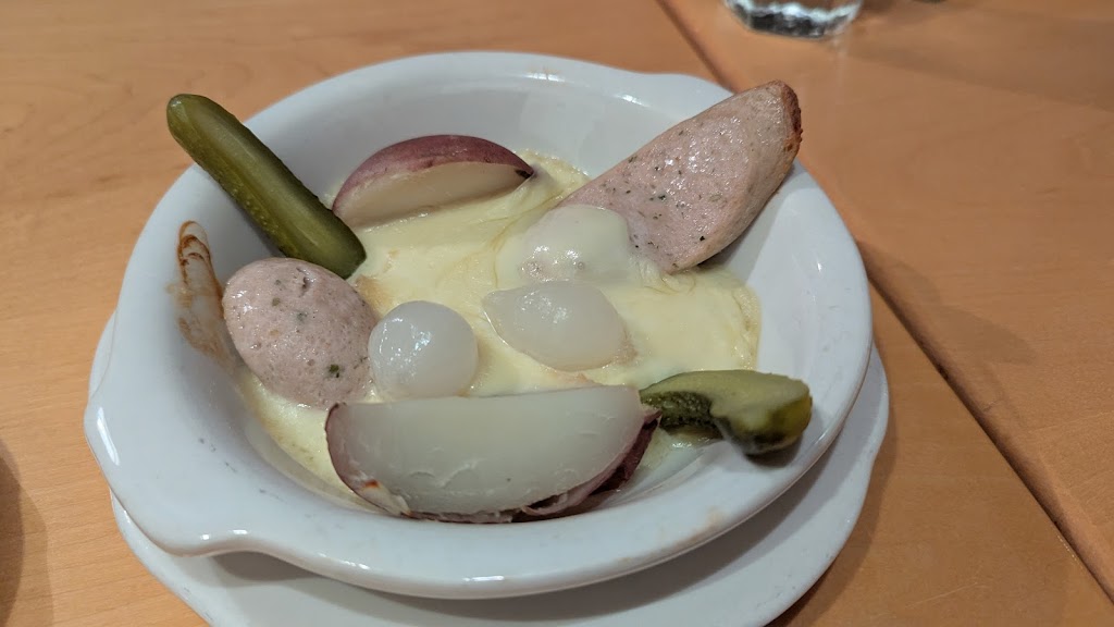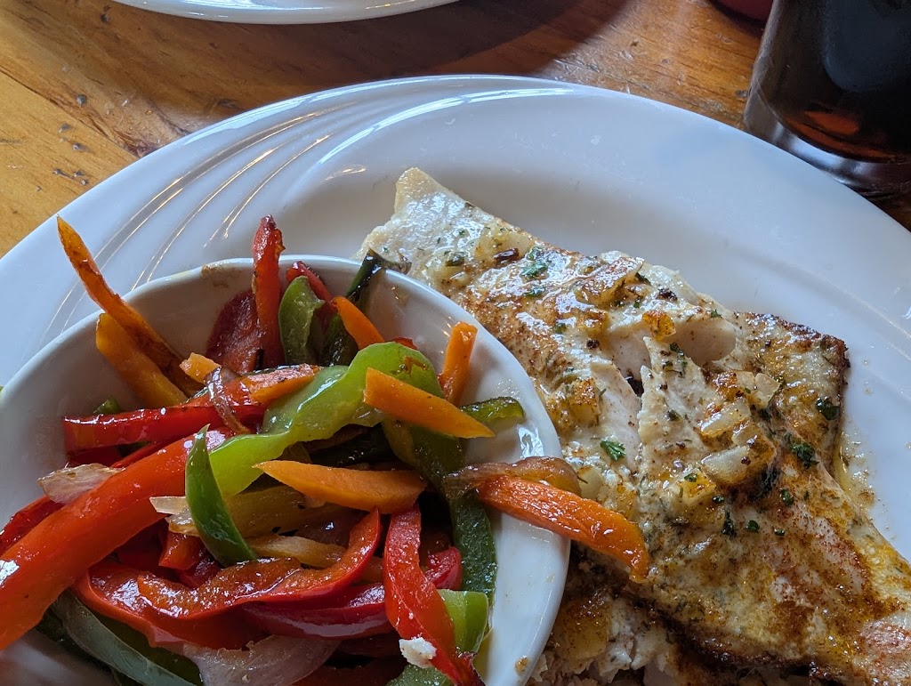 pleasant service and accomodations, nice to have somewhere to have a meal where you are not being blasted by TVs and too many people crowded into the room. Food was fairly good, the fried perch was nice, and my partner enjoyed the vegetarian option, but i found my chicken to be quite dry and the sides to be sparse on the plate, so that was disappointing. overall though it was a pleasant enough experience