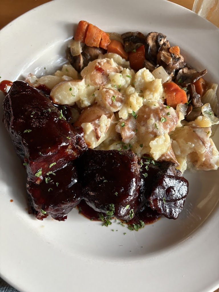 Very good meal tonight. All entries were good and as ordered. One diner enjoyed the sweet barbecue sauce on the ribs. I would not have because I prefer more of tangy sauce.