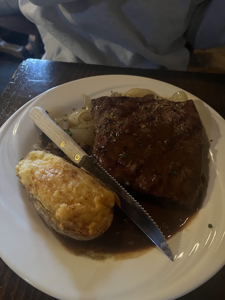 Great prime rib. Salmon was also very good. Great Atmosphere and service. Ask to be seated in the stone house.