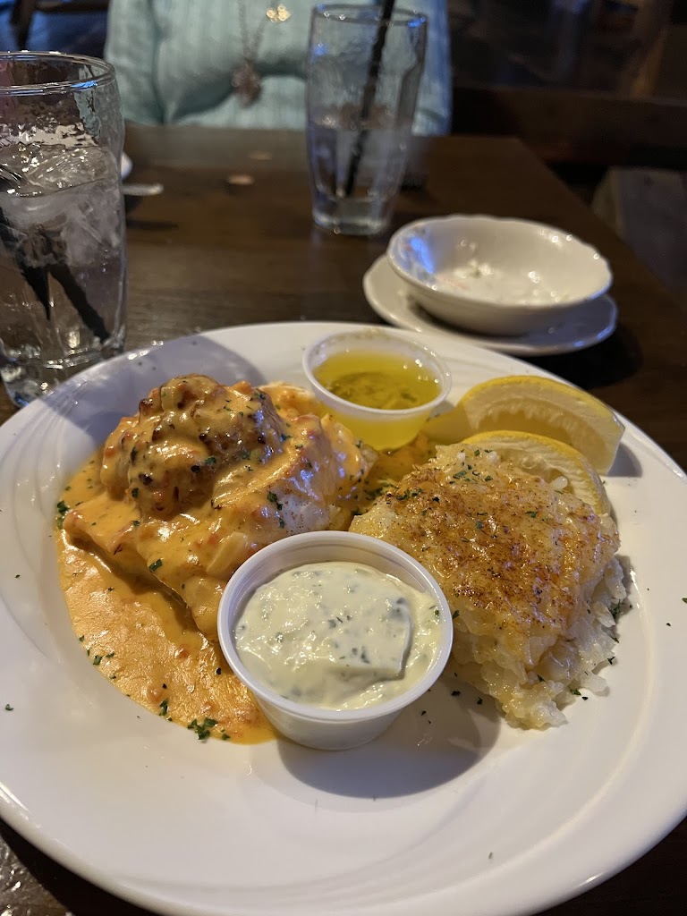 Our server was excellent. His name was Robert. I had the crispy chicken salad and it was delicious. Love the honey mustard dressing. The tomato vegetable bisque soup was amazing. Everyone at our table of eight enjoyed their lunch. The salmon salad was excellent with a vinaigrette dressing.Two people had burgers with barbecue sauce on them that they really enjoyed. The person who had the steak salad said his filet mignon was excellently cooked and delicious. Our other friend who had a BLT said the bread was amazing and the whole sandwich was so good. Highly recommend this place.
