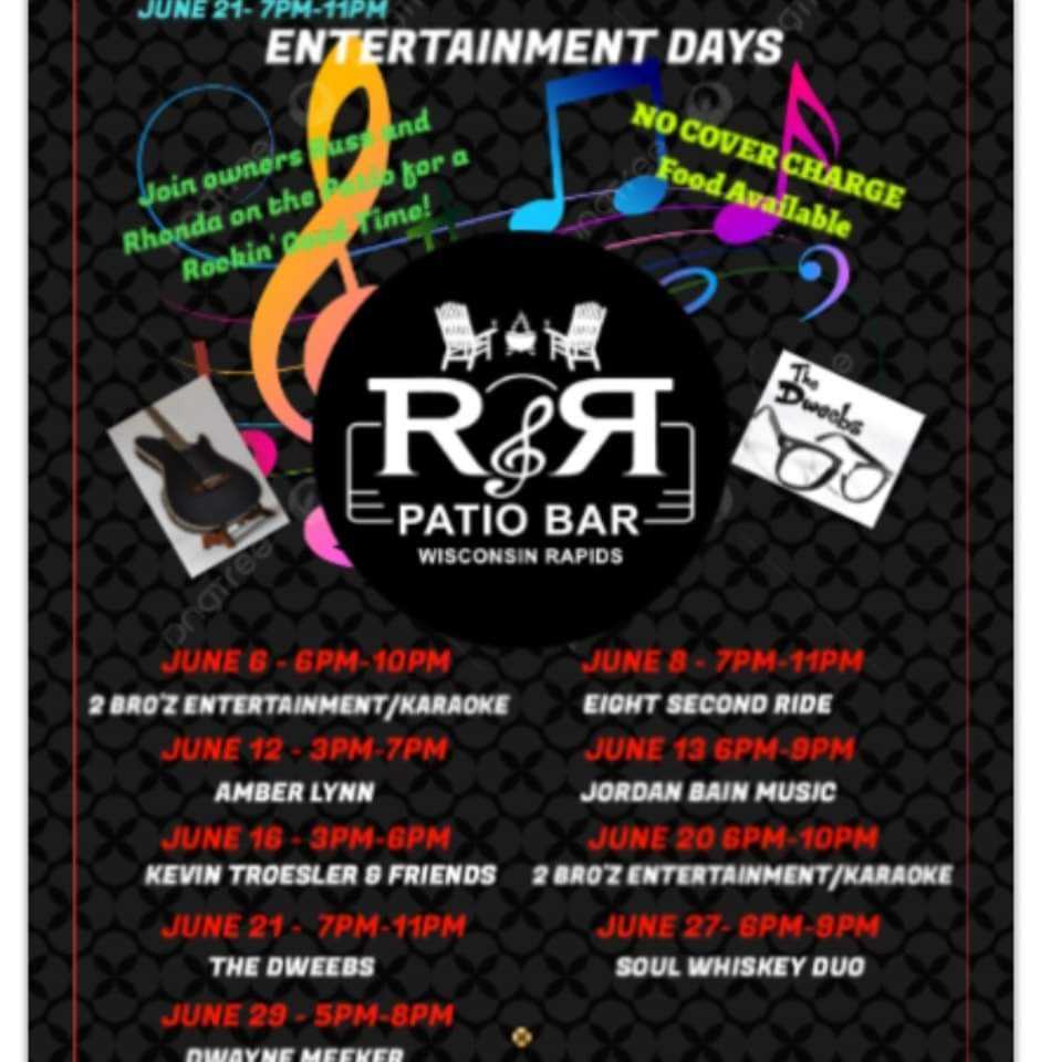 We are a Live Music Venue with a large outdoor patio and indoor seating. Our kitchen is open from 11:00am until 8:00pm Tuesday thru Sunday. We have food specials throughout the week, fish fry Fridays and Live music on our 30'x20' outdoor stage most weekends in the summer.