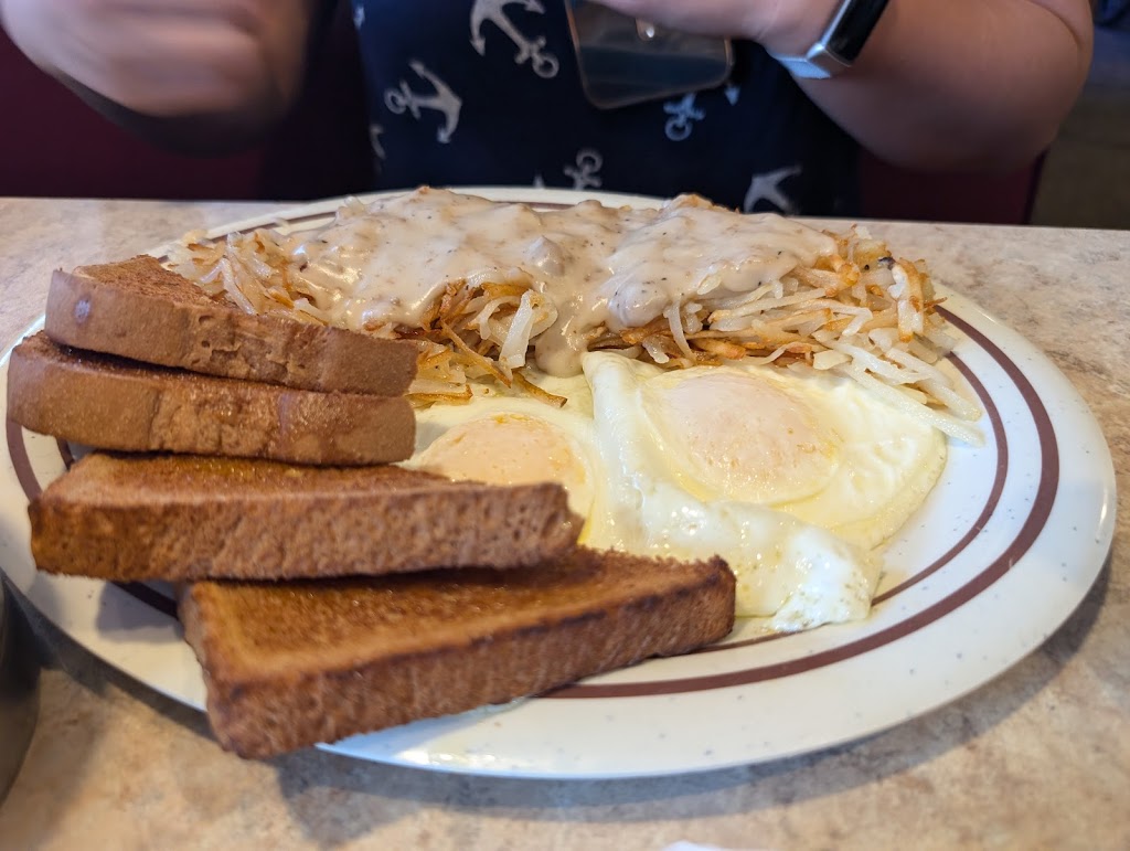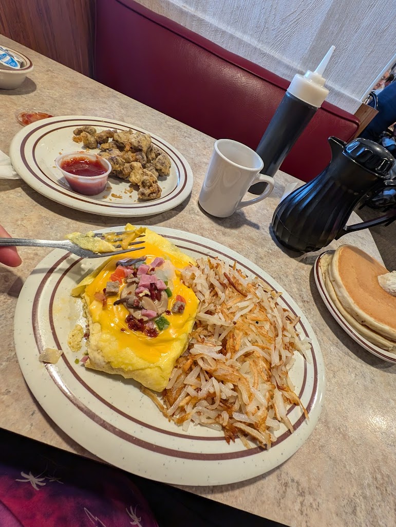 Breakfast was good. The restaurant had a small town diner feel. The staff were friendly and helpful.