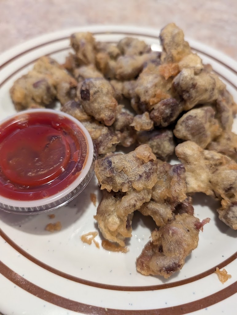 Awesome atmosphere. Awesome servers. Chicken gizzards are perfect! Pancakes were mid (a bit too thick for my taste.) hash browns were oilier than what I prefer. The coffee though.... Damm! Cinnamon hazelnut was fantastic!