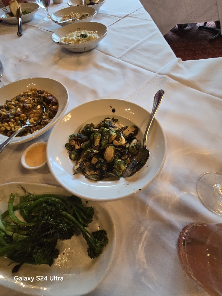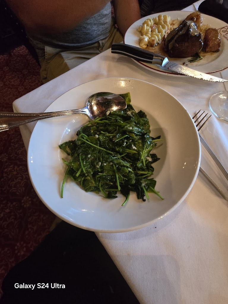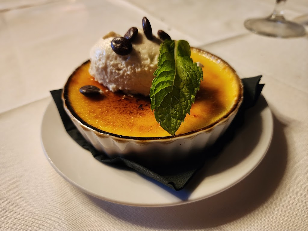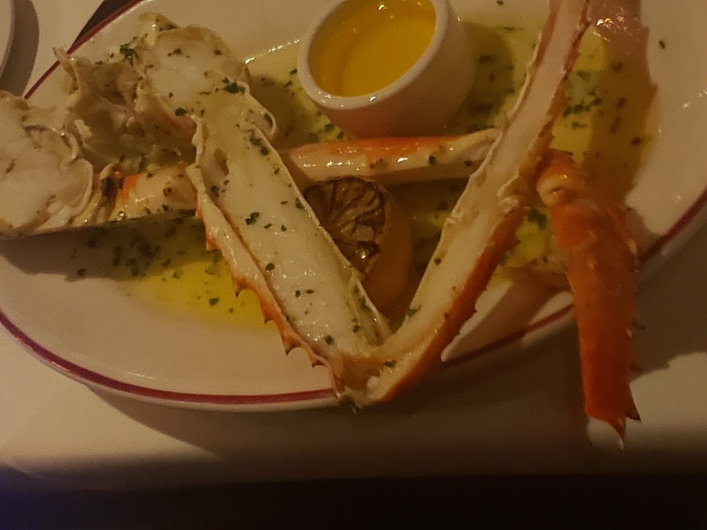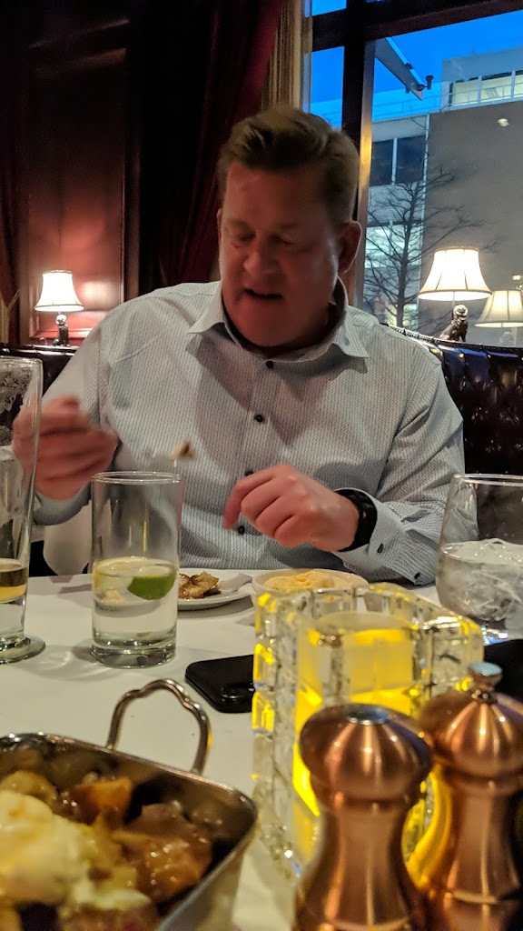 It was ok, the waiter was very polite but talked so fast about the many specials I couldn't understand at all, we asked for him to slow down and he did but it was still hard to understand so I just skipped trying Amy specials. The dry aged NY strip steak I ordered was cooked per order medium rare, but very chewy and a bit tendony, not what I would expect for a prime cut that was dry aged. Flavor was decent but not as buttery with the rich hearty flavor that develops with a dry aged steak. Sides were ok, Brussels sprouts were cooked very rapidly and still crunchy at their core. I prefer a little slower roasted and tender. Other sides were fairly similarly prepared very quickly without a marinated slow cooked flavor. For dessert I ordered creme brulee and a port, but they never brought the port. Creme brulee was well done with a very thick layer of caramelized sugar on top with a perfect golden color.