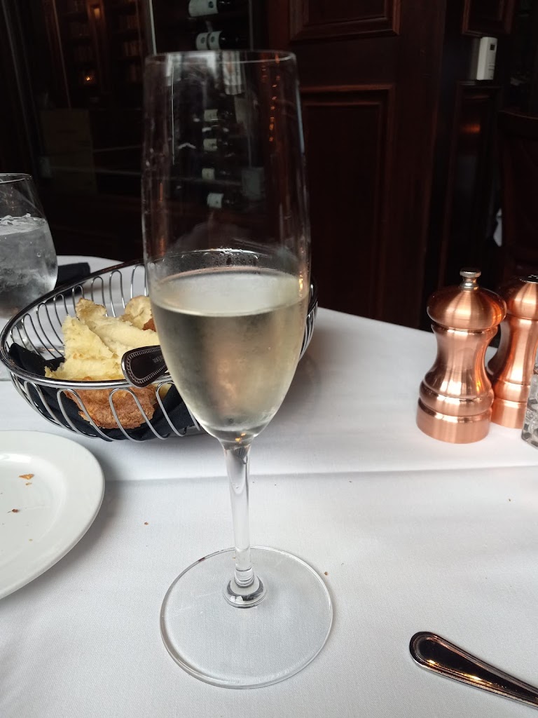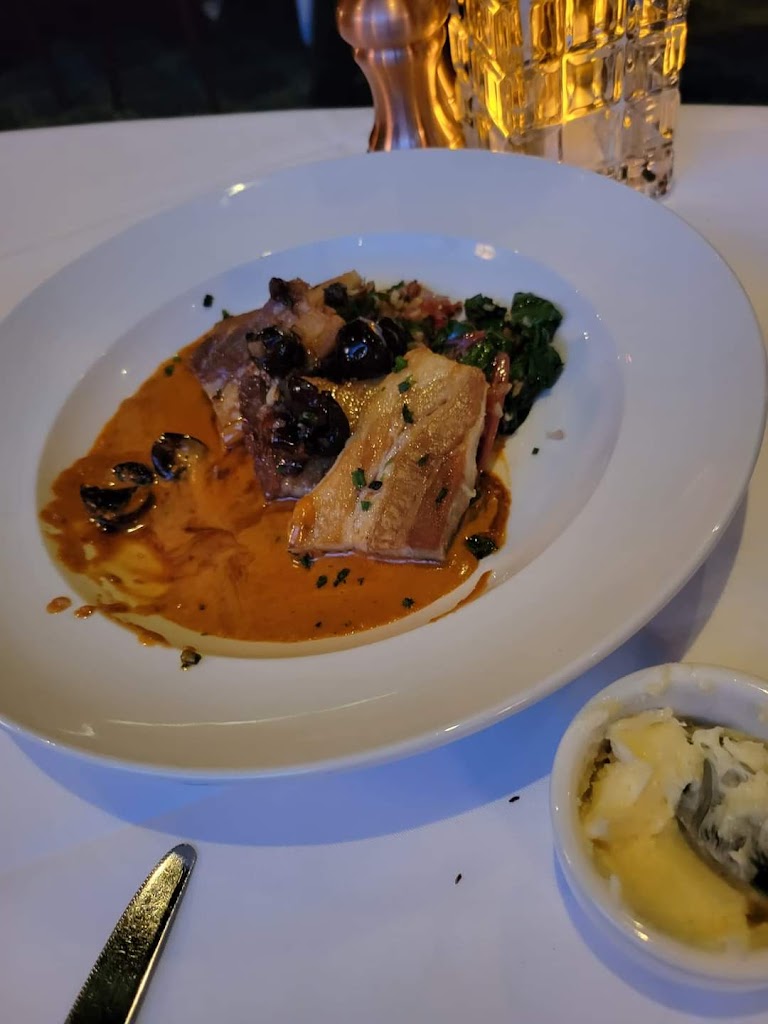I took my wife here for her birthday last week and we very impressed! I chose to book a place we’ve never been and this one got pretty good reviews so I was excited to surprise her! Inside is very intimate and sophisticated and I assume since we went on a Tuesday night, it was not crowded nor was there any noise. We were greeted by Marilyn, who was super sweet and gave us all sorts of compliments (thank you). Our server, Raj, was very knowledgeable and took good care of us. My wife got the pistachio crusted sea bass and I got the filet, both were excellent. AND I can’t forget to mention the warm sourdough bread that came out before the meal. Oh, and the table across from us ordered bananas foster, we got to watch that being prepared. Thanks again for a great experience!