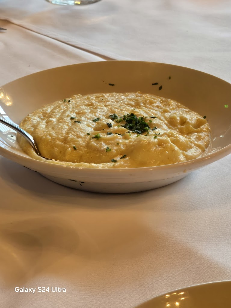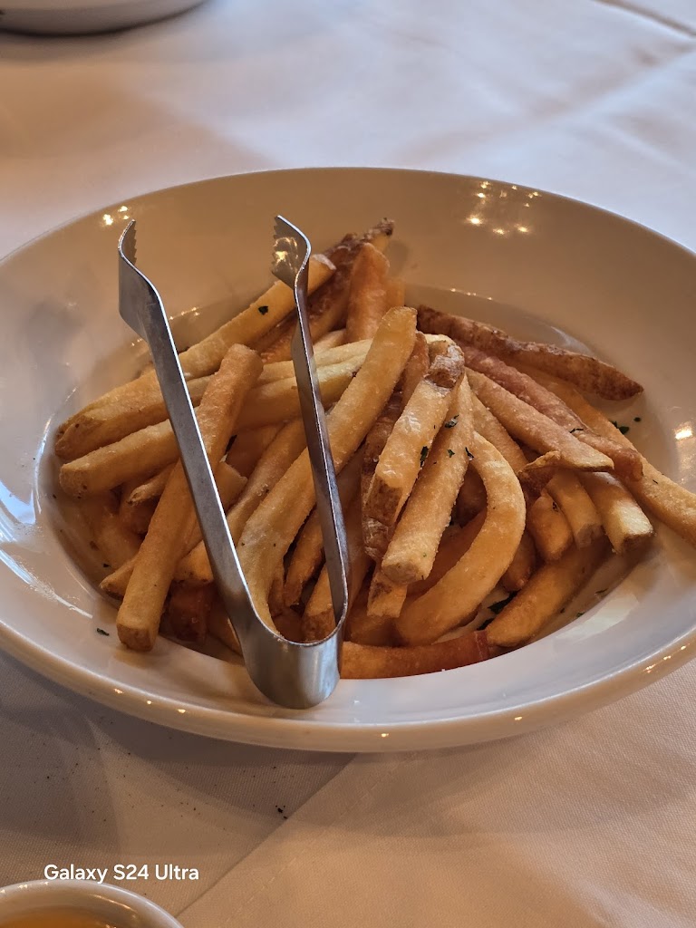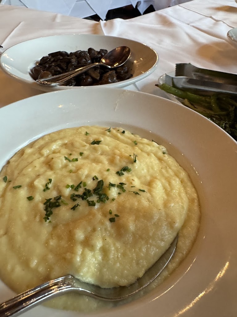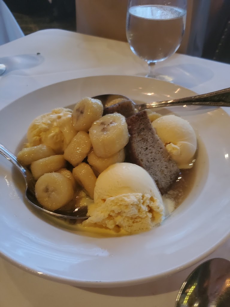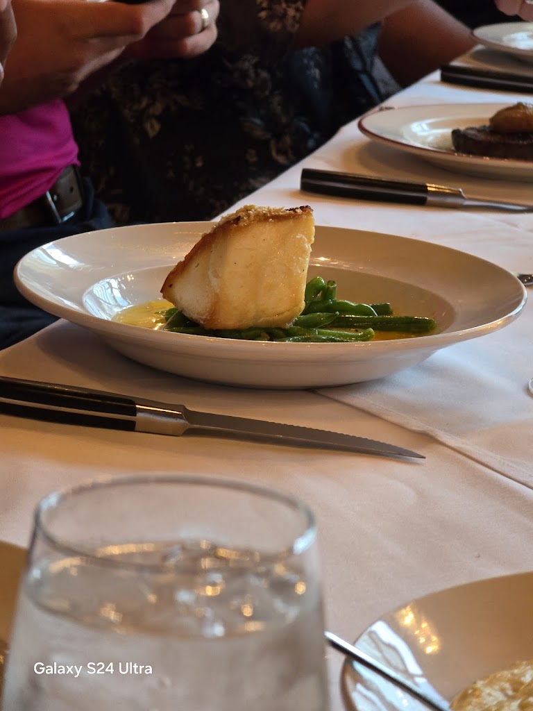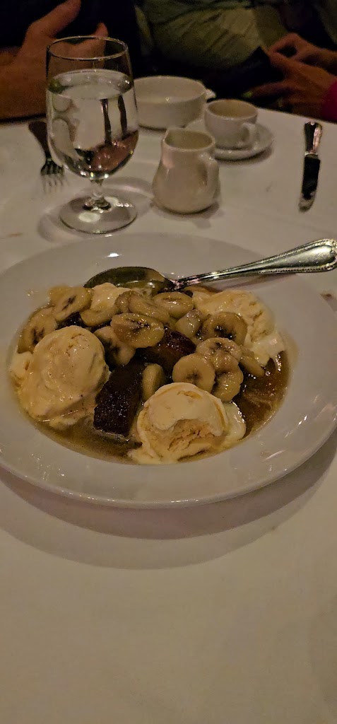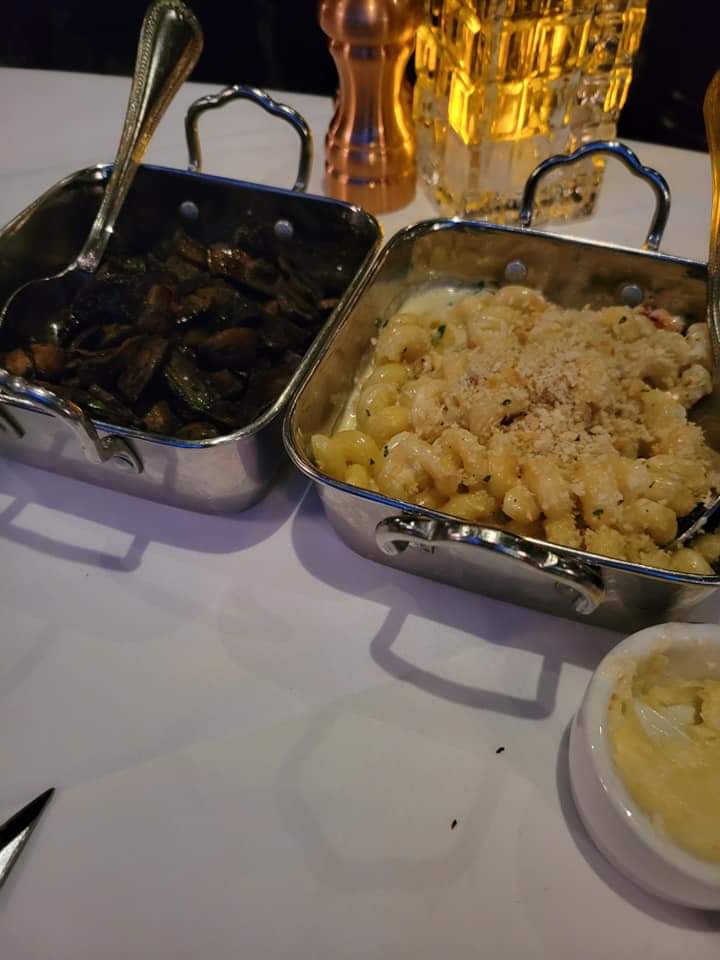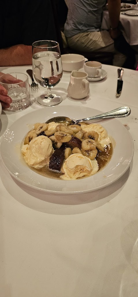 We had the Chilean sea bass and filet mignon. Wonderful selection of shareable sides. Mashed potatoes, sauteed mushrooms and tallow fries. For dessert we had creme brulee and 🍌 banana Foster prepared 🔥 at our table. 👌