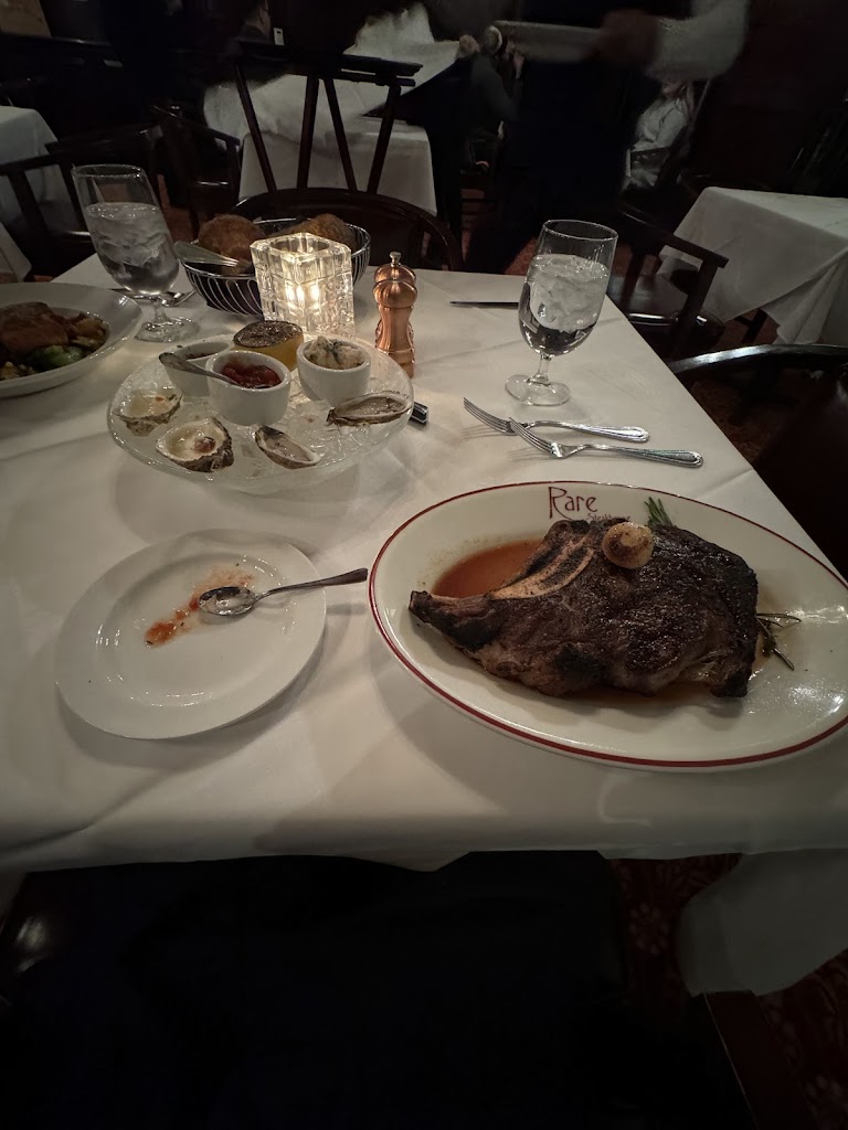 Steak was absolutely amazing and cooked to perfection!! The best oysters Rockefeller I've ever had! Great ambiance and drinks as well. Definitely will be back.
