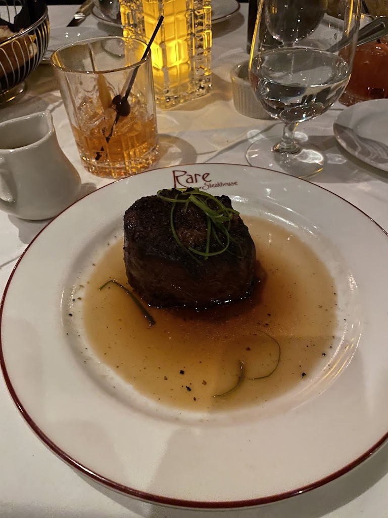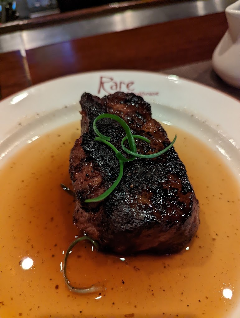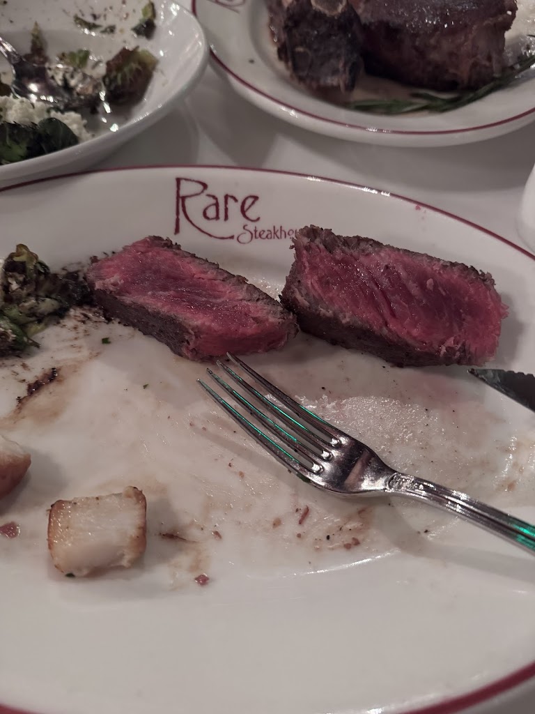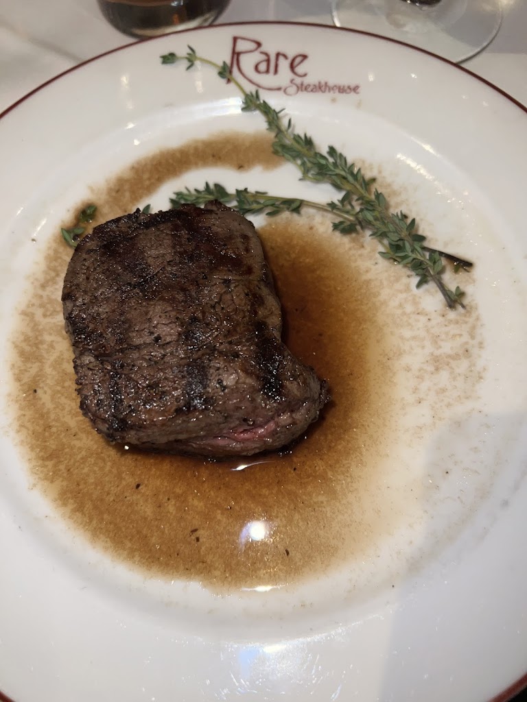 Wife and I had a great experience at Rare on our wedding anniversary. Service was excellent, the decor was beautiful and there was a nice ambiance, and our meals were delicious (wife had NY strip and I had salmon since I unfortunately don't eat beef any more). I just kept kicking myself for not getting to Rare sooner (my first time there). We didn't have the opportunity to hang out at the bar for an extra drink but it was a beautiful space, certainly next time. I would absolutely recommend dining at Rare, and we will definitely enjoy future visits there.