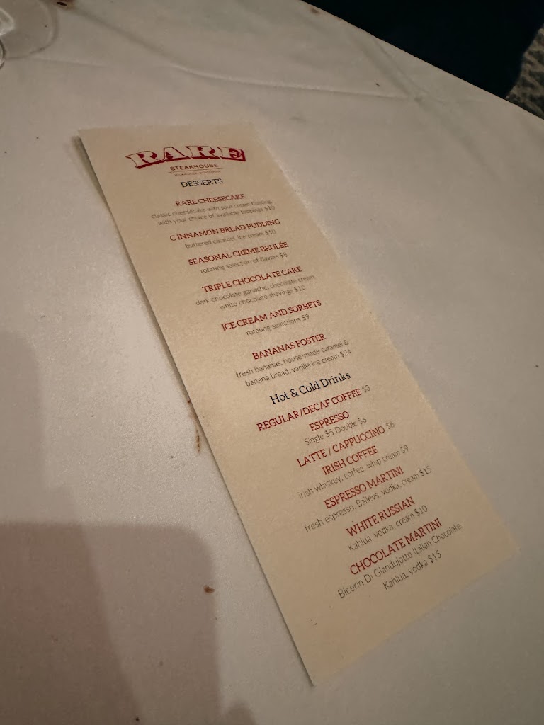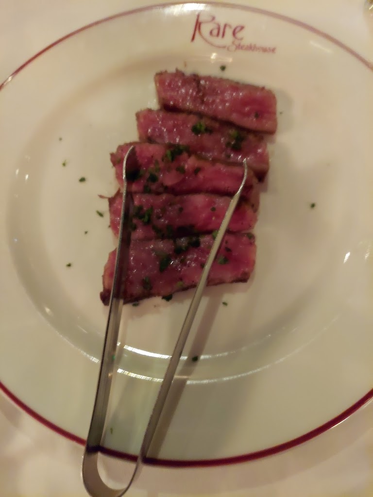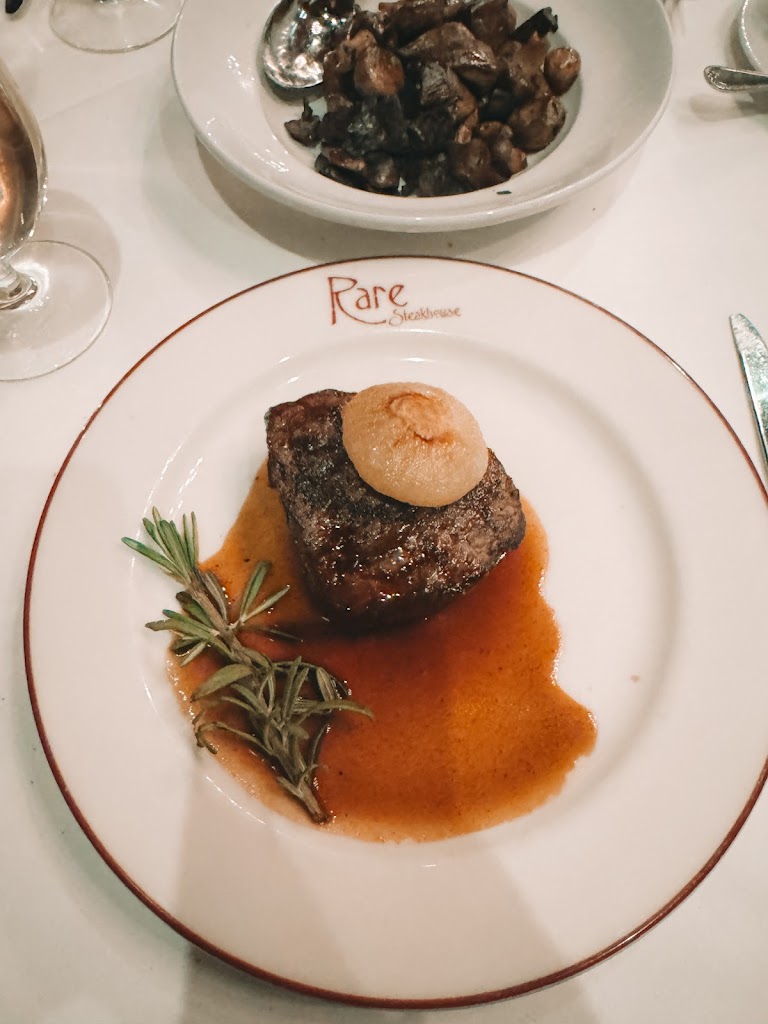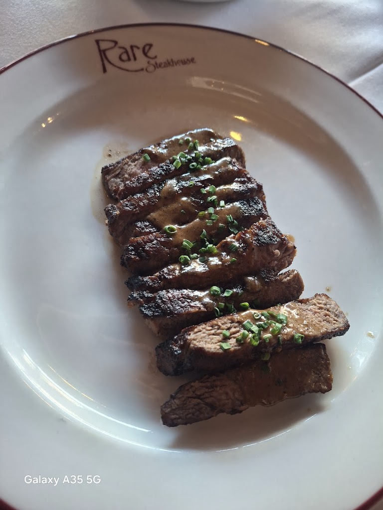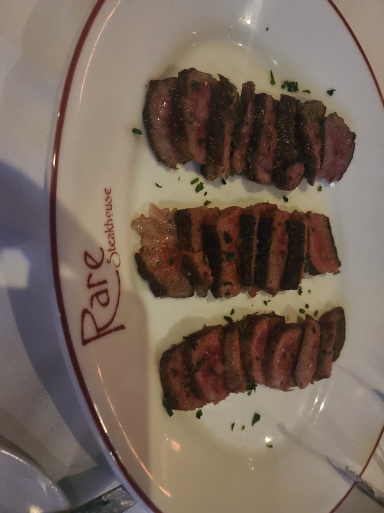 Wife and I had a great experience at Rare on our wedding anniversary. Service was excellent, the decor was beautiful and there was a nice ambiance, and our meals were delicious (wife had NY strip and I had salmon since I unfortunately don't eat beef any more). I just kept kicking myself for not getting to Rare sooner (my first time there). We didn't have the opportunity to hang out at the bar for an extra drink but it was a beautiful space, certainly next time. I would absolutely recommend dining at Rare, and we will definitely enjoy future visits there.