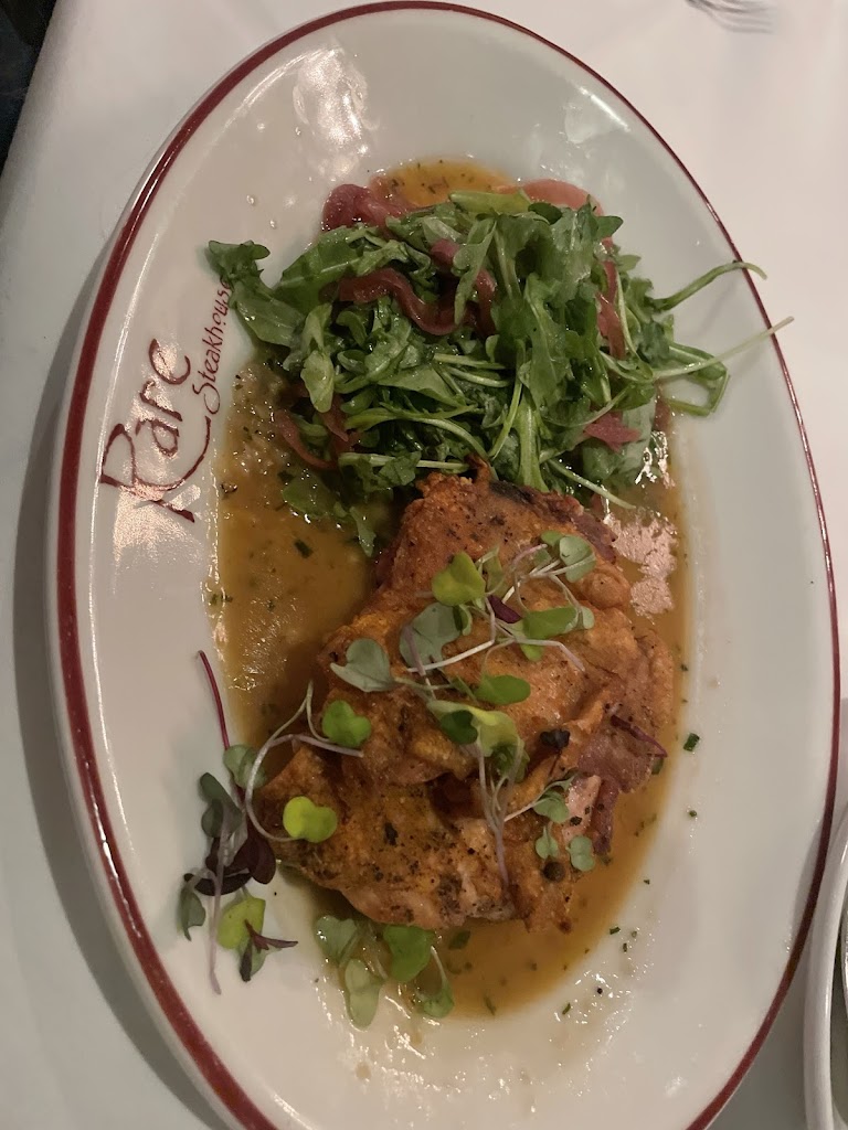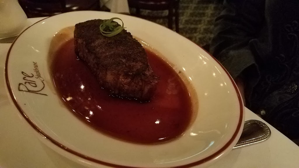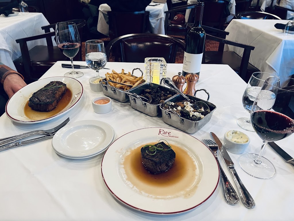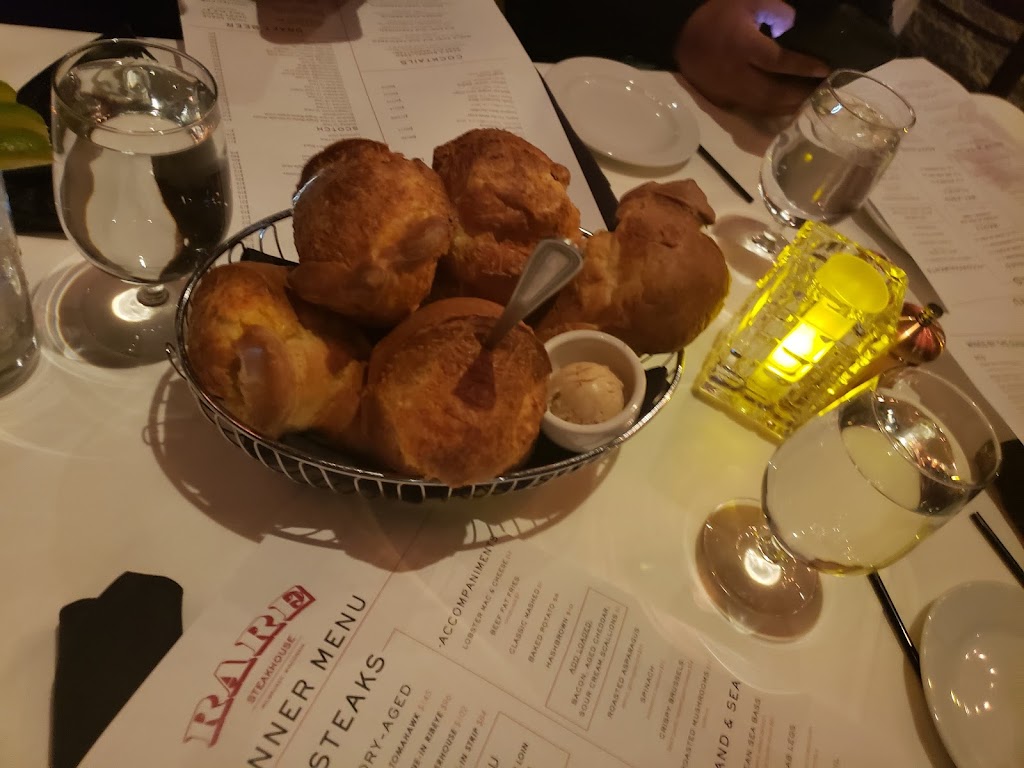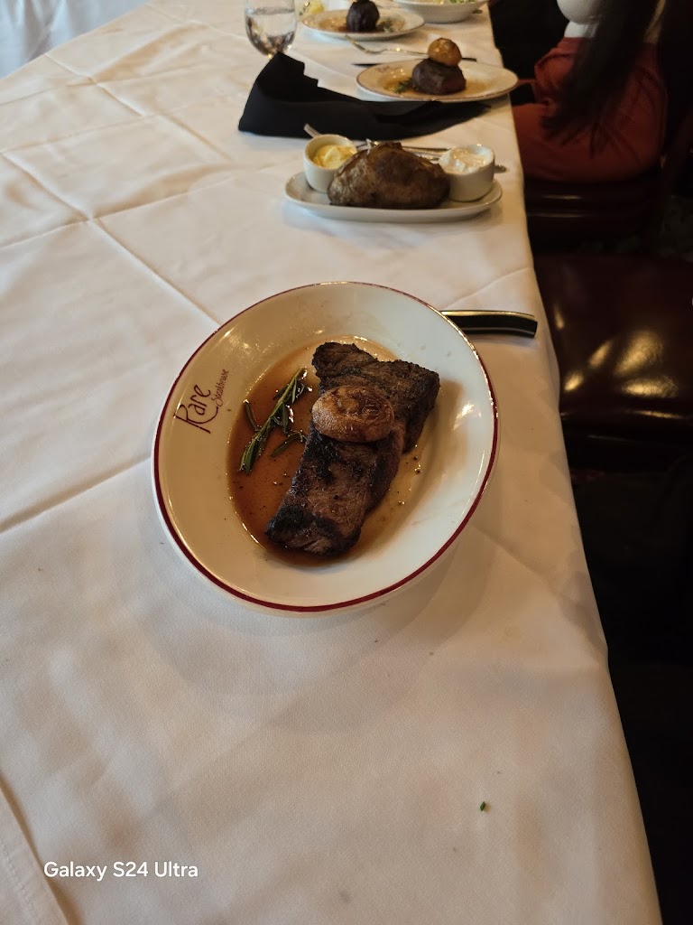 My son and I wanted to enjoy a classic steakhouse while visiting Milwaukee. Rare Steakhouse provided all of the features and ambiance we sought. The dinner rolls were huge, delicious popover style offerings. My wedge had a delicious house prepared bleu cheese dressing, and my son’s lobster bisque was fantastic. The bone-in filet with Oscar preparation and the NY Strip with a Maryland crab cake topping were outstanding. Chocolate cake and coffee were a perfect bookend to the evening. Service was prompt and unobtrusive - the staff freely and easily assisted each other. Particular kudos to the valet, who was chasing down cars in a driving storm. A top notch evening in downtown Milwaukee.