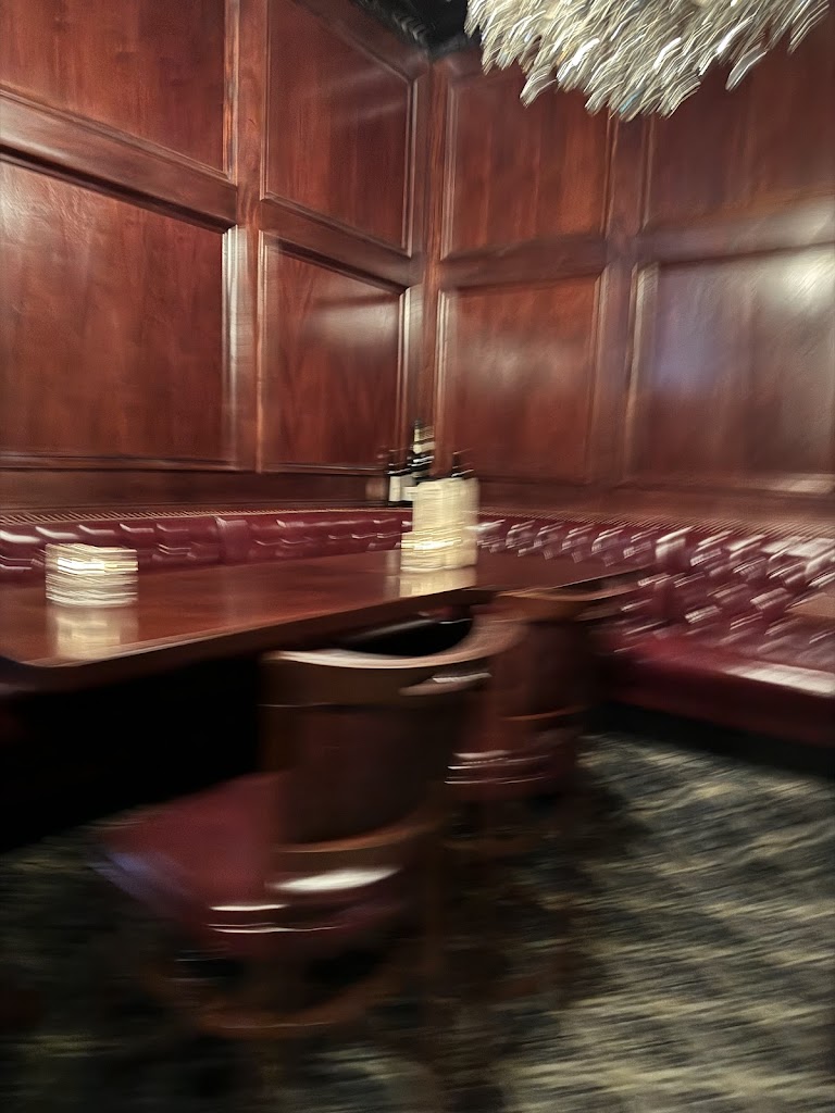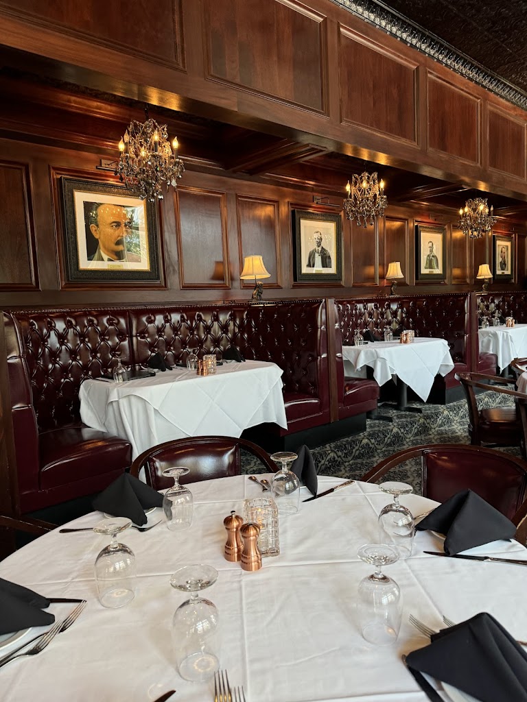 The space? Think masculine elegance—big leather booths, rich wood tones, and a wine selection that will impress 🍷