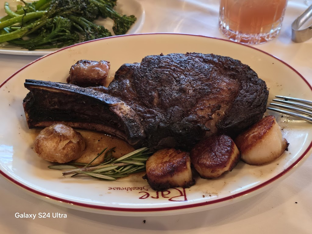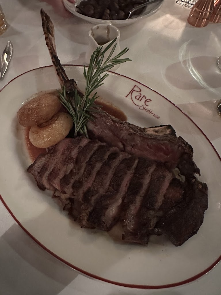 Unfortunately for us, Rare was a total miss. I’ve been there before so this could have been an off night but the main meal, our Tomahawk Steak, was so under cooked, it was still purple. Seeing as we paid $145, we did ask it be cooked longer. After we got it back, it was still rare. We asked for it to be Medium Rare. I understand it’s a larger cut of meat but when you go to a steakhouse that prides itself in the quality/cook of the meat, we did expect it to be cooked properly. The taste was terrible too. Not sure if recooking it changed the taste but it was inedible. Overall just an unacceptable experience. No one asked how it could be made better. We were kind of ignored after we asked for it to be cooked longer. Yes we were given a complementary cake slice by the server who twice said the steak was not cooked properly.