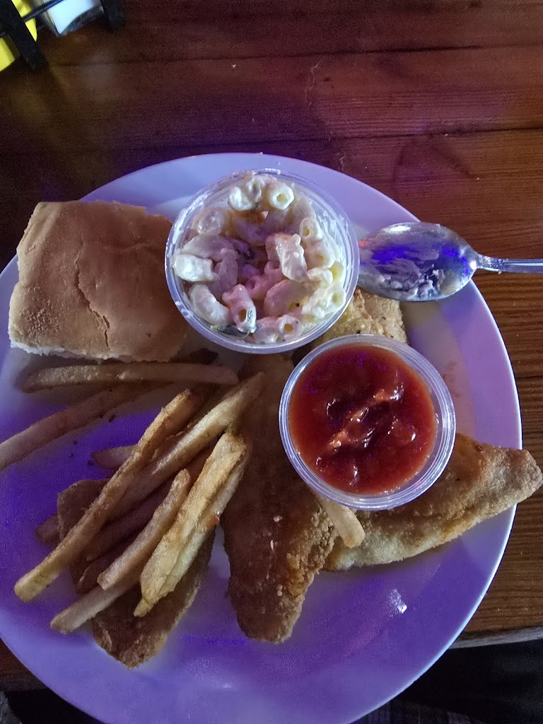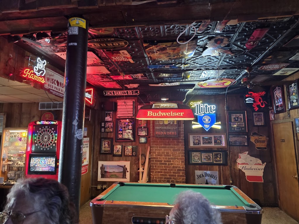 Great home town bar with a small menu and daily specials. Friday, they have fried Bluegill (bream) which is great! Pool table, dart board and juke box. Note tables are all bar height so not wheelchair friendly. Has picnic table seating in back outdoors also.